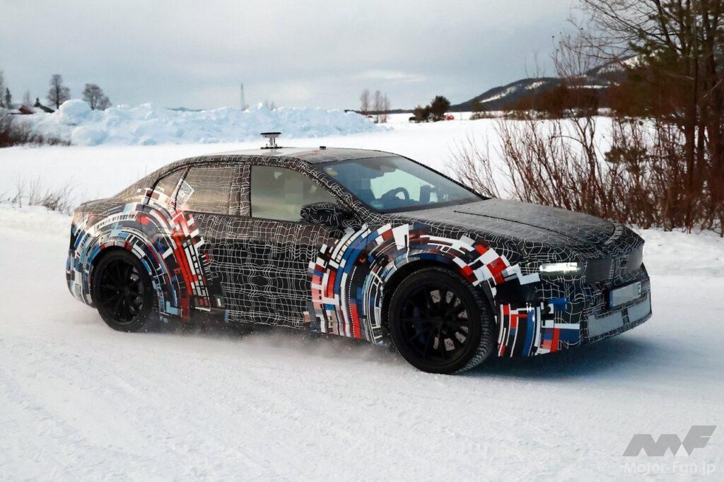 豪雪のフィンランド山中でキャッチしたプロトタイプは、まだまだカモフラージュが多いが、「ビジョン・ノイエ・クラッセ」コンセプトに似ていることあわかる。また、複雑なシャシー技術に対応するフェンダーは非常に幅広く、「i3」より低い印象だ。