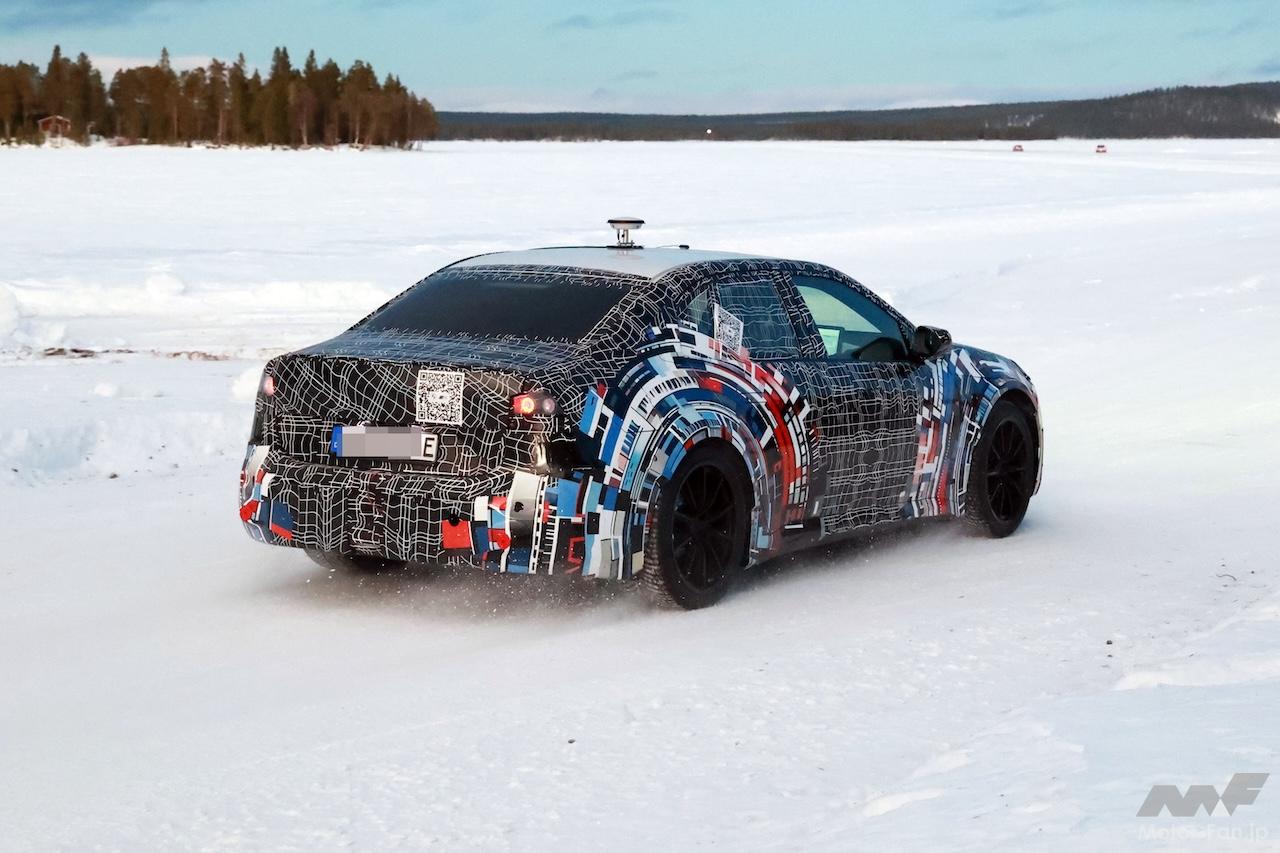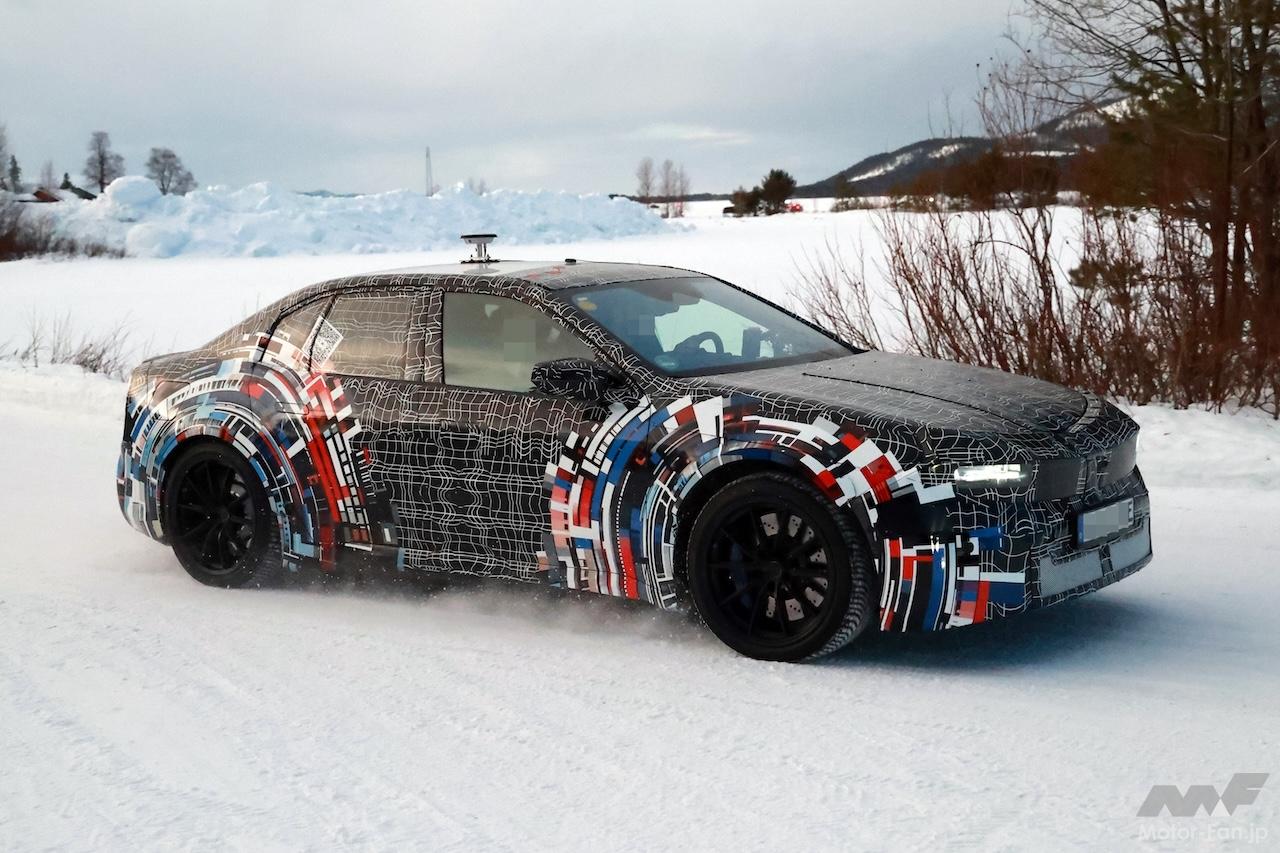 豪雪のフィンランド山中でキャッチしたプロトタイプは、まだまだカモフラージュが多いが、「ビジョン・ノイエ・クラッセ」コンセプトに似ていることあわかる。また、複雑なシャシー技術に対応するフェンダーは非常に幅広く、「i3」より低い印象だ。