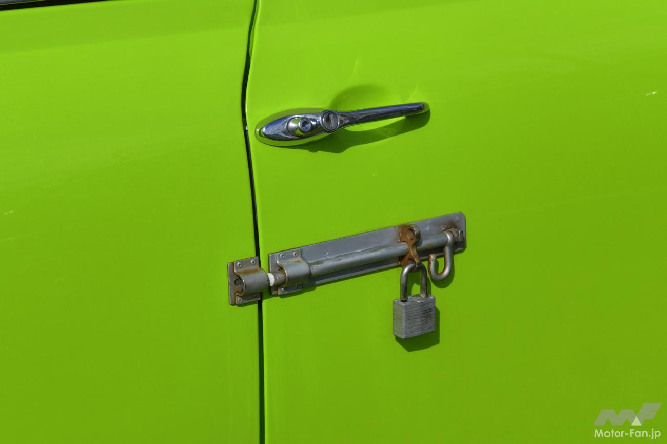 もちろん、運転席のドアにはかんぬきと南京錠が備わる。