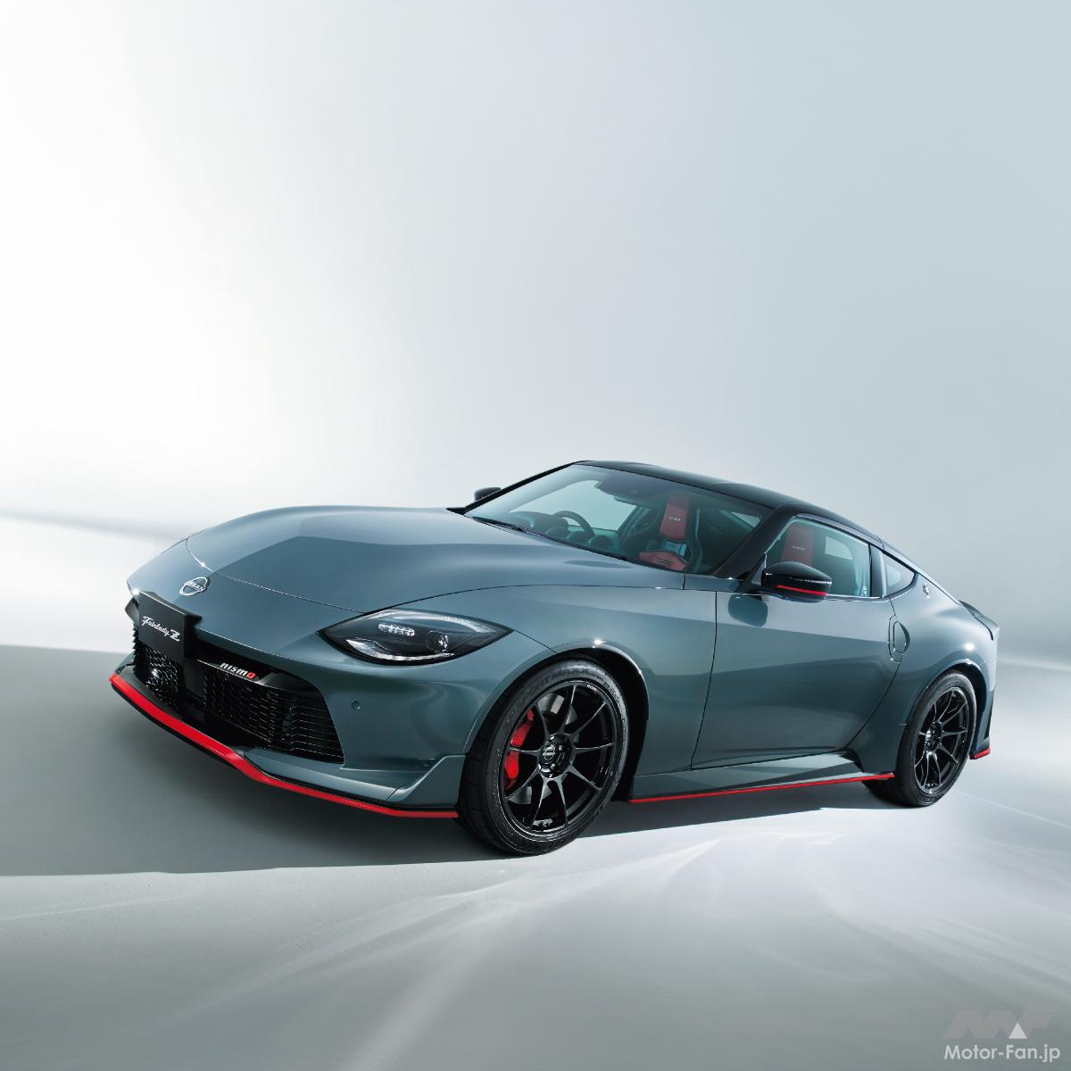 「フェアレディZ」に対し、エンジン出力は298kW(405PS)から309kW(420PS)に、最大トルクは475N・m(48.4kgf・m)から520N・m(53.0kgf・m)に向上させることで、パワフルな加速や俊敏なシフトチェンジを可能とするなど、さまざまなNISMO専用チューニングによりパフォーマンスをさらに磨き上げたモデル。フロントグリルをはじめとするエクステリアパーツがNISMO専用に開発され、ダウンフォースの強化と空力性能の向上を両立しながら、低重心かつ伸びやかなスピード感が演出されている。