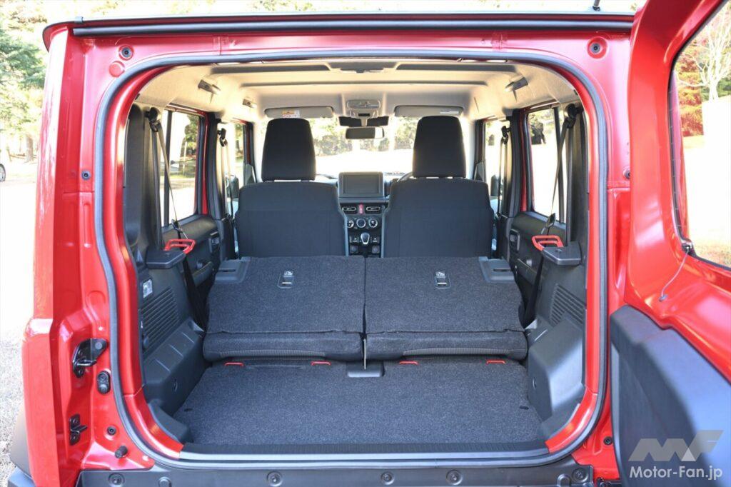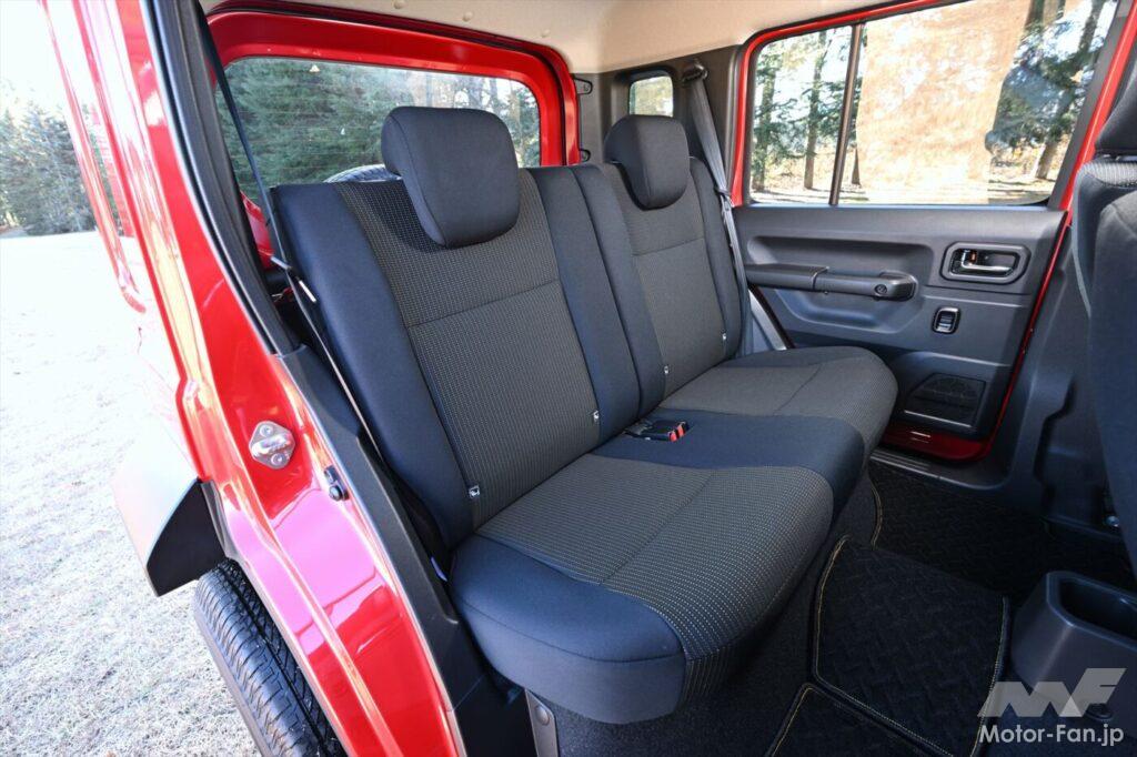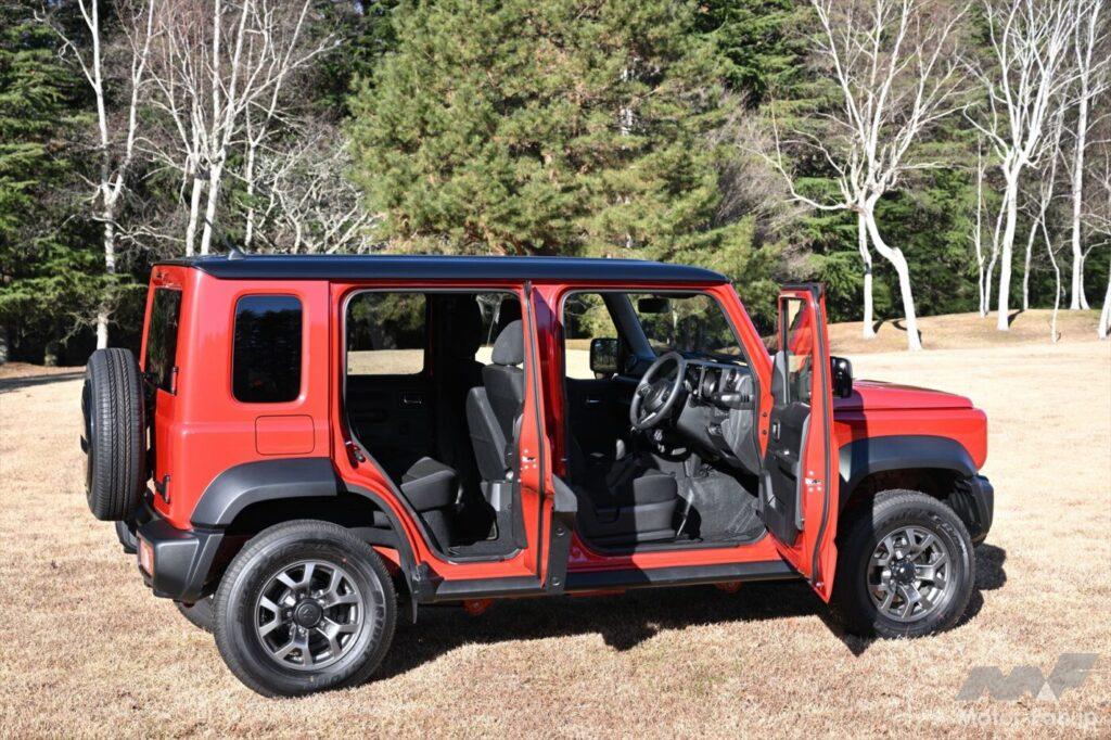 最小回転半径はシエラの4.9mから5.7mと大きくなっており、小回りがやや利かなくなったことは日常使いだけでなく狭い林道を走る際にも留意すべき点になりそうだ。