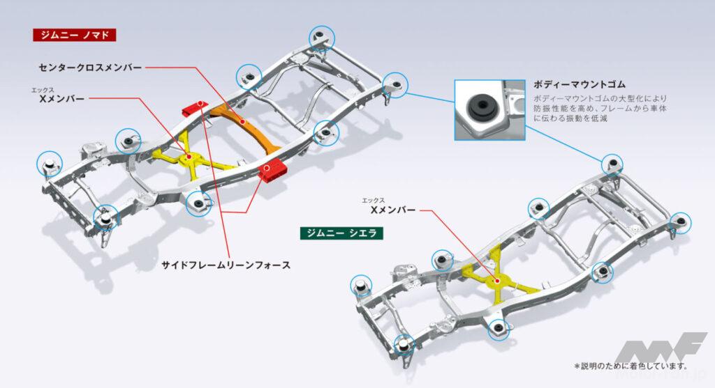 先に発売されているジムニー シエラは、クルマの性能を最大限に活用する“プロユーザー”が主なターゲットとされている。一方、利便性や居住性を高められたジムニー ノマドはプロユーザーに加え、日常生活のなかでもジムニーが必要となる層も想定ユーザーに含まれる。