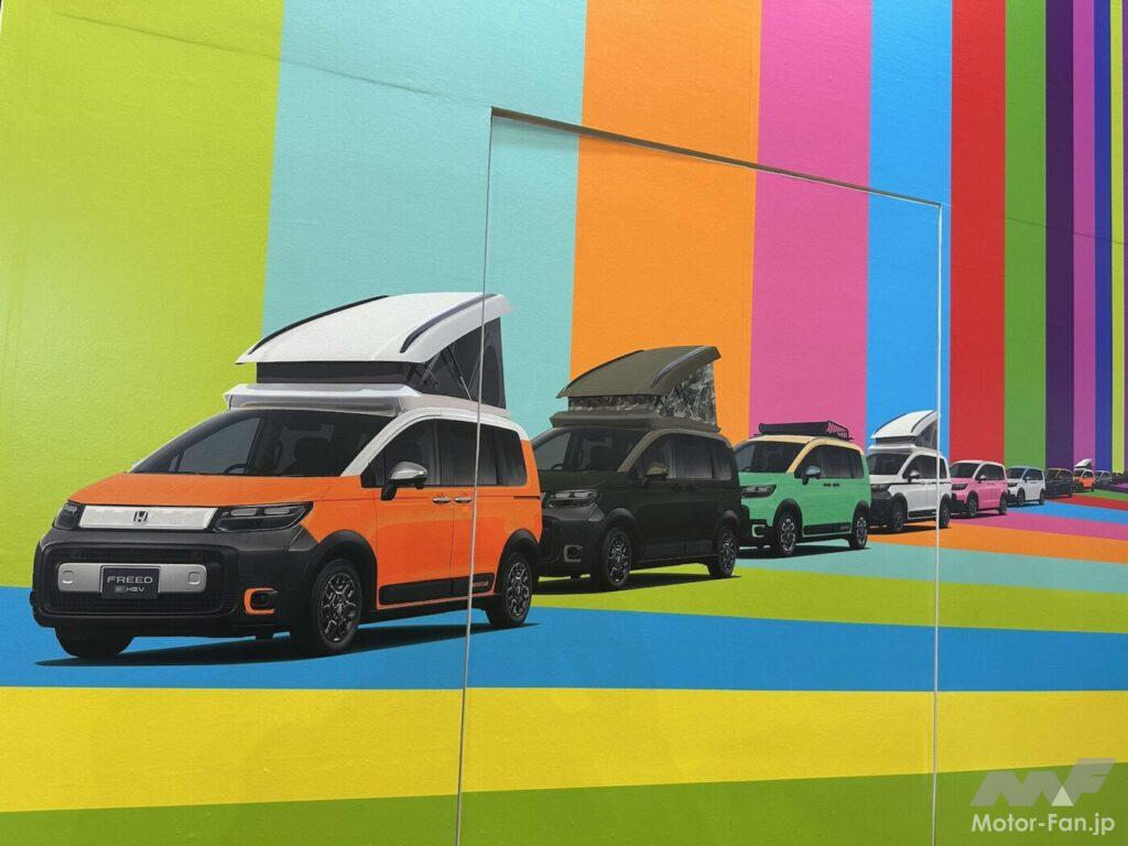 ホワイトハウス・ブースでは「ホンダ・フリード・クロスター」Style iDプロジェクトが初披露された。家族で快適にキャンプを楽しむことを目的に開発され、使い勝手の良い装備と美しいボディカラーが目を引く。