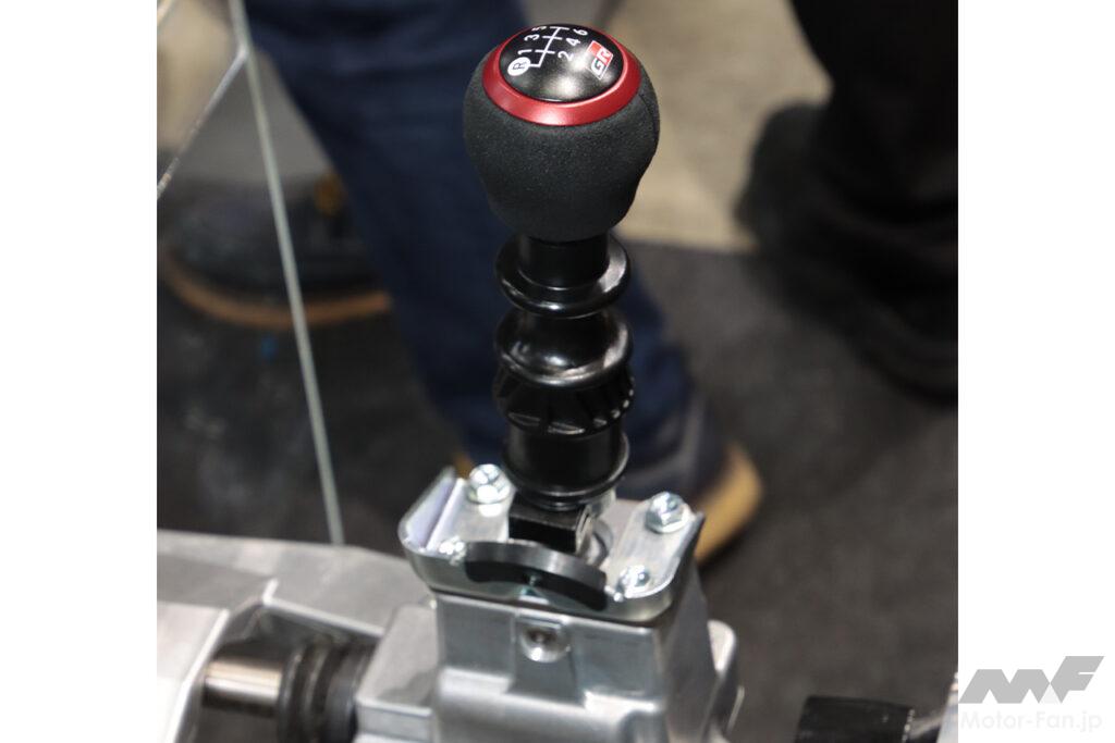 その「GRパーツ」コーナーで今回、単に展示するのみならず、シフトレバーを操作可能な状態で置かれていたのが、「高容量FR向けマニュアルトランスミッション」だ。