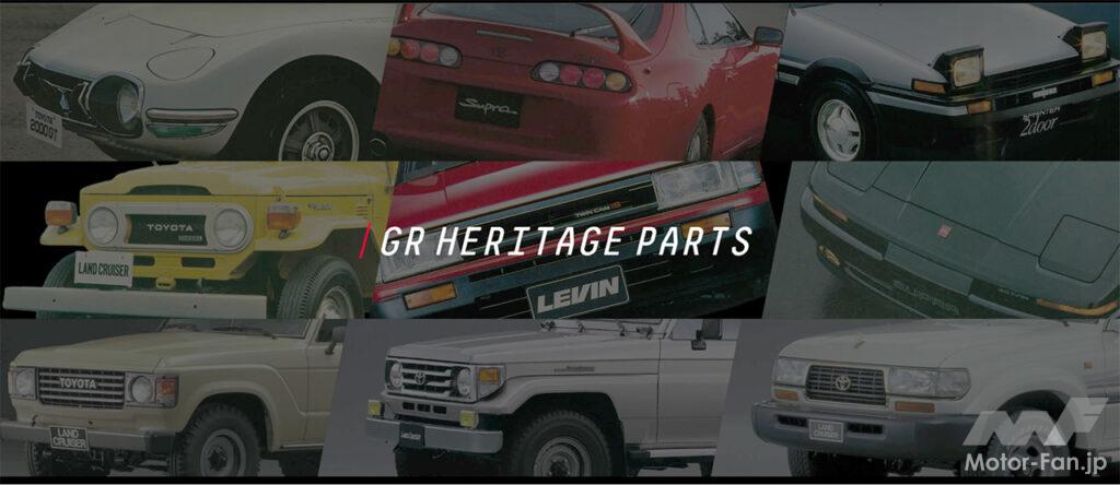 オートサロンのトヨタガズーレーシングブースでは近年、「GR」ブランドを中心としたカスタムカーを出品するのみならず、モータースポーツの現場で得た知見を盛り込んで開発されるチューニングパーツ「GRパーツ」や、旧車向けの復刻部品「GRヘリテージパーツ」のコーナーも展開するのが恒例となっている。