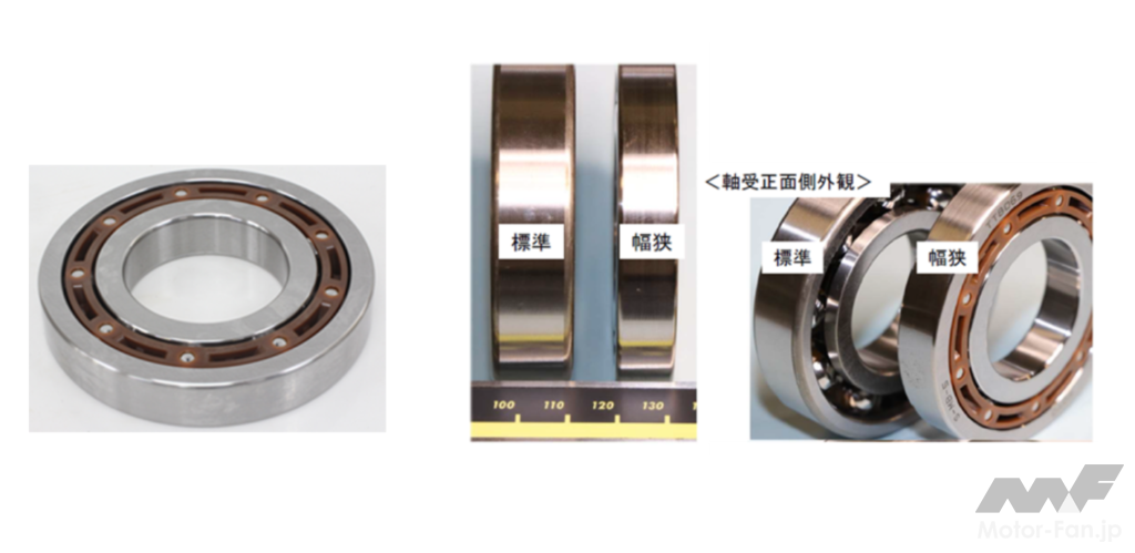 従来の標準サイズの軸受では、片持ち形状の冠形保持器が採用されていたが、コンパクト化の観点では構造上の限界があった。JUCBでは、2016年9月にリリースされた合わせタイプ保持器のノウハウを活用することで、その課題を解決した。