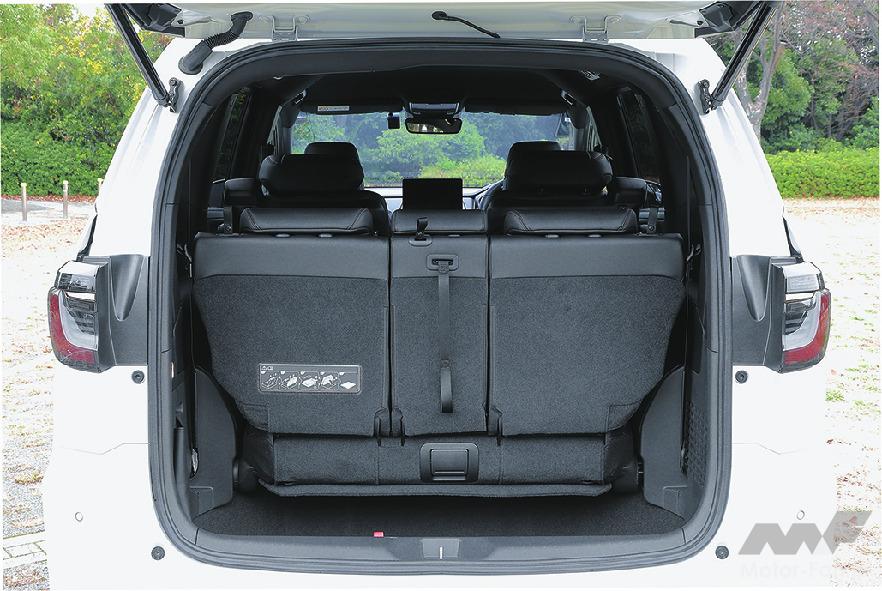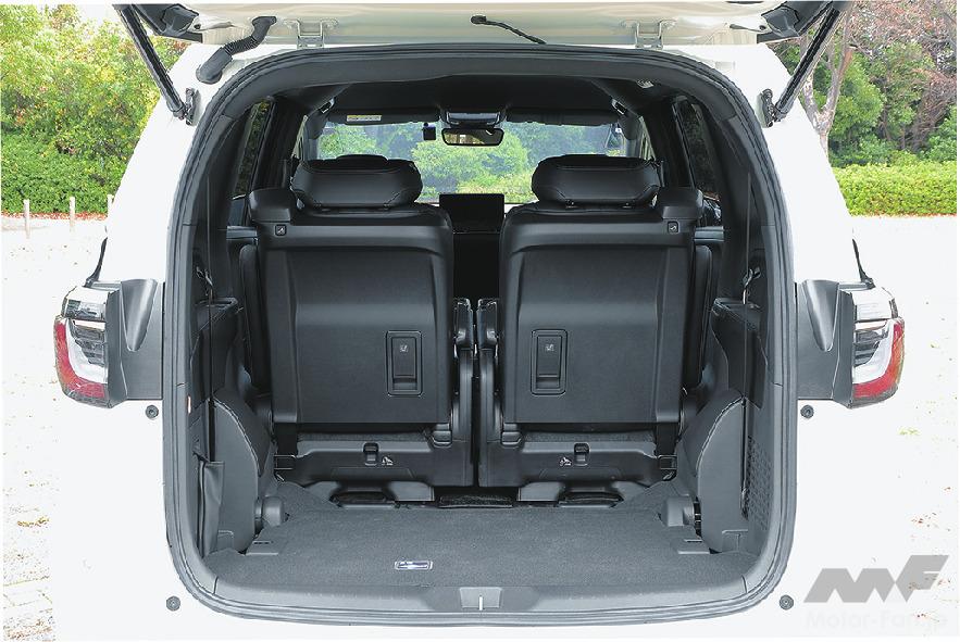 e:HEVはエンジンが発電しその電力を使うモーター駆動が基本で、車両重量がそれなりにある大型ミニバンとの相性は抜群に良い。315Nmという、3.0ℓガソリンエンジン並みの最大トルクを0-2000rpmで発生するモーターは、発進時から力強くレスポンスも良いからだ。ストップ&ゴーの多い街中でも頼もしく走ってくれる。エンジンは発電のために回っていて、強い加速を求めればそれなりに高回転なるが、遮音がしっかりしているので静粛性も高い。