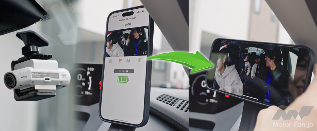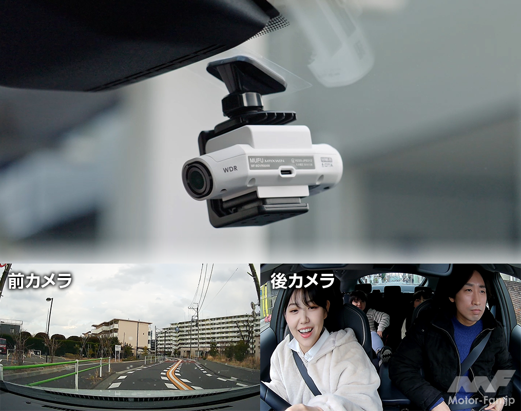 フロントカメラが車両前方を撮影し、リヤカメラは車内や車内越しに車両後方を撮影する。両カメラともにフルHD画質による撮影が可能で、画角は対角124.2度とワイドだ。