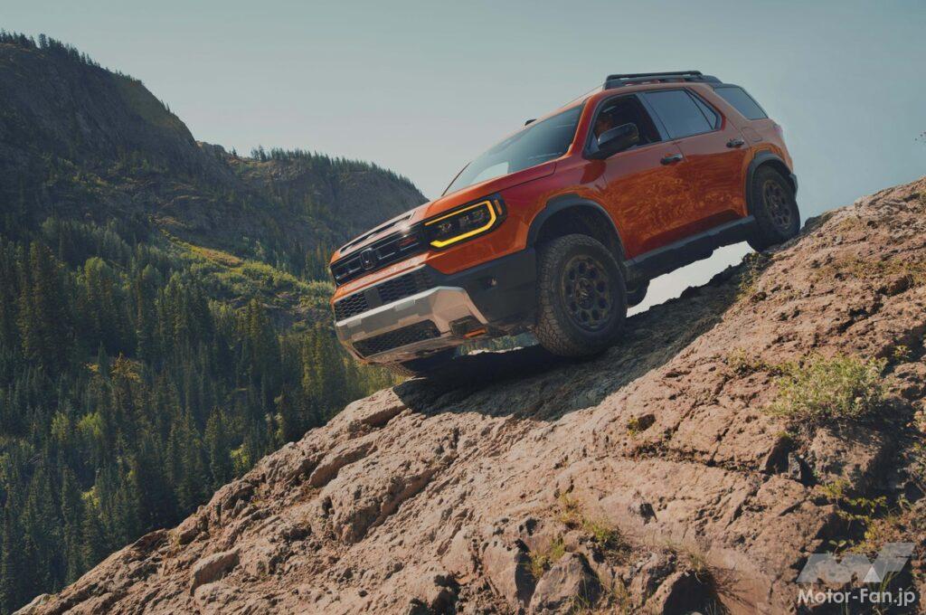 2026年型パスポートは、トレイルスポーツに真のオフロード性能を与えることを目的として、堅牢なホンダの小型トラックプラットフォームをベースに開発されている。その設計の重要な要素は剛性の強化であり、フロントの横剛性を72%、リヤのねじり剛性を50%向上させたことにより、パスポートラインナップ全体の乗り心地、ハンドリング、全体的な洗練性も向上されている。ホイールベースは2885mm(+64mm)に延長され、乗り心地と直進安定性が向上。また、大幅にワイドになったトレッド(フロント+33mm、リヤ+38mm)により、コーナリング時の安定性が改善されている(編集部換算値)。