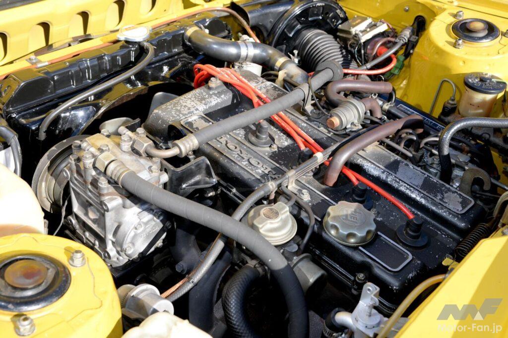 発売時に昭和51年規制をクリアした18R-GU型DOHCエンジン。