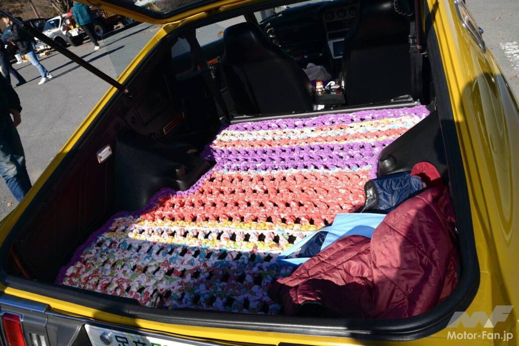 後年になってカーナビが普及してくると、センターコンソールの一部を外して枠をアルミ板から製作。そこへ市販のカーナビを組み込んだ。できることは自分でするのがモットーなのだ。こんな森脇さんに対して奥様もセリカLBに愛着を覚えたのだろう。お子さんが2人になるとリヤシートを倒した上で裸足で遊べるようにと、カーペットを作られたのだ。それが今も残されていて、ご夫婦の愛着が感じられる仕様になっていた。もちろん奥様の指定席である助手席にも、ご自身で作られた座布団が敷かれていた。