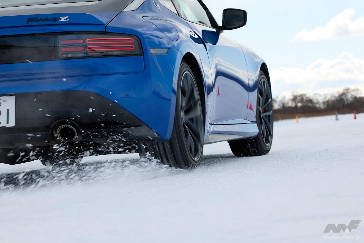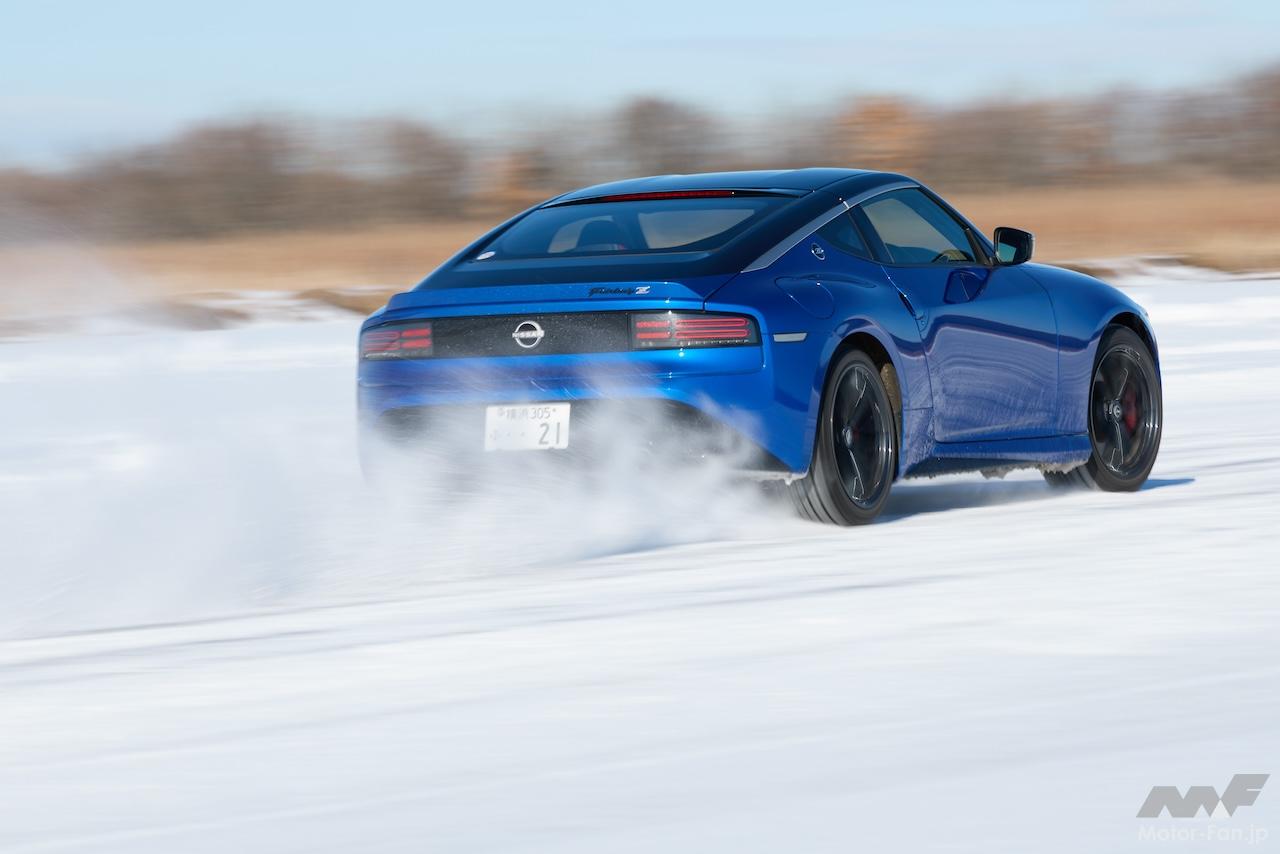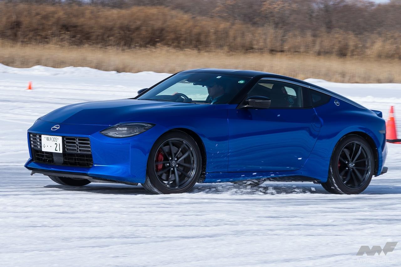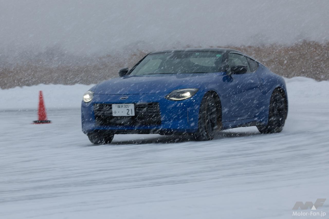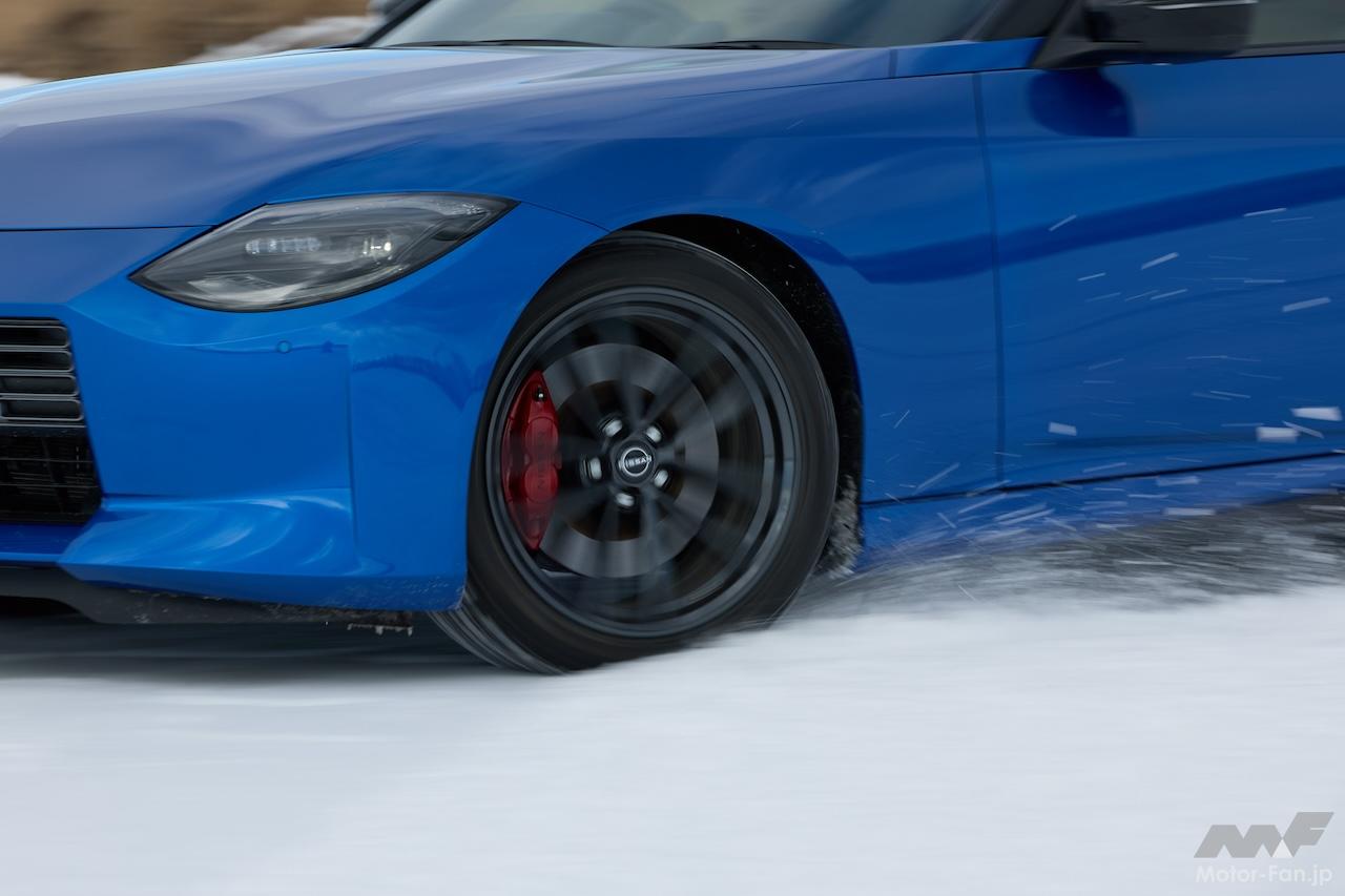 Zの場合、すべりやすい雪上のような路面では、後輪がグリップ限界を超えるとお尻を振り出し、進みたい方向に進まなくなる。少しでもラフなアクセル操作をしようものなら、即座にスピンモードに陥る。乾燥舗装路での卓越したパフォーマンスを知っているだけに、もどかしい思いがする。
