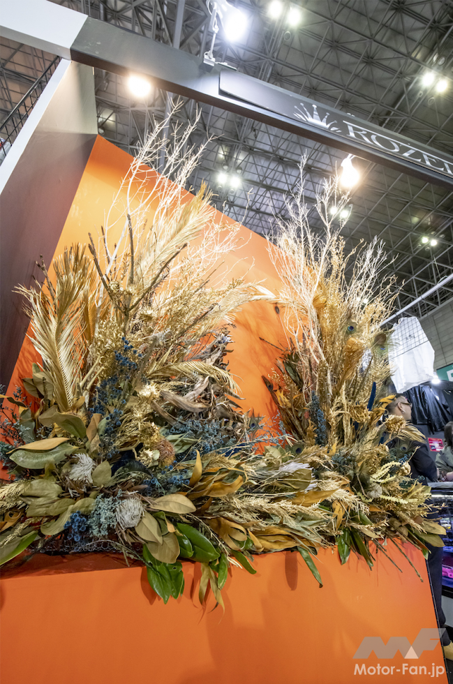 天井の高い店舗内には地元の彫刻家である宮川達也氏の常設ギャラリーも無料開放されており、また東京オートサロン2025のALESSブースで多くの人の目を釘付けにしたフラワーアーティスト堤昌氏の巨大ドライフラワーも展示。誰もが気軽に立ち寄れて、個性豊かなアート作品にも触れられるオススメのスポットとなっている。