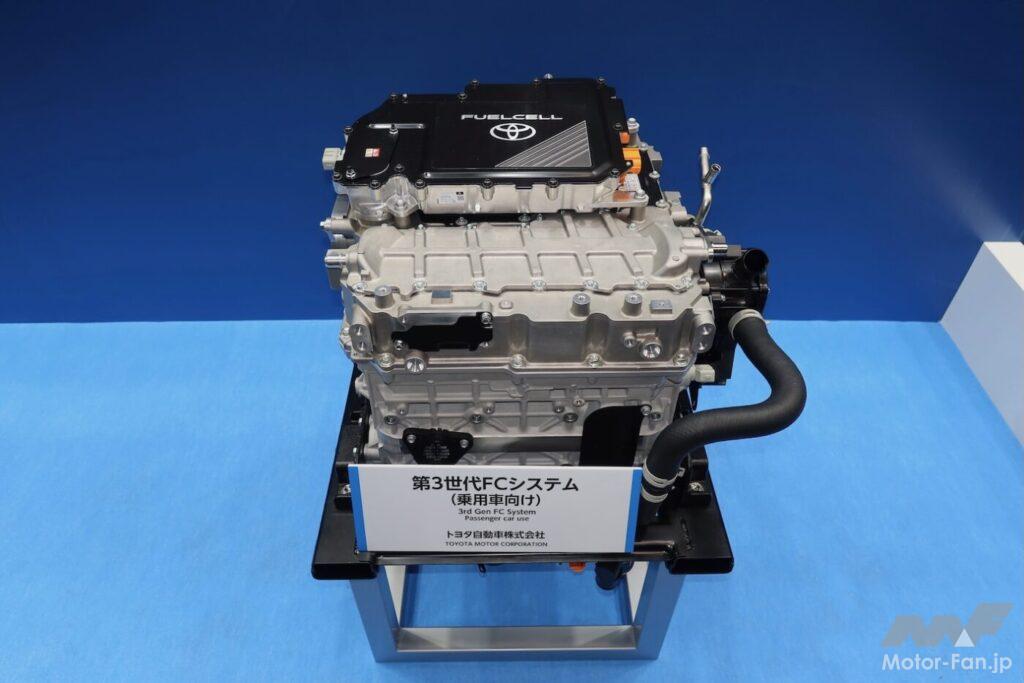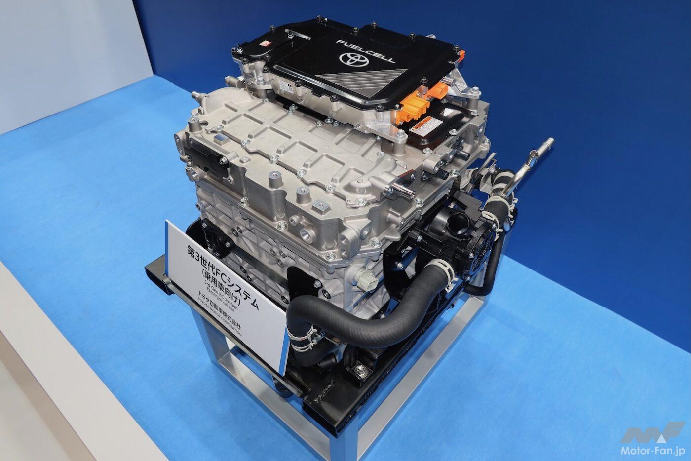 第3世代FCシステムの乗用車向けは、現行モデルでいうとMIRAIやクラウンのようなセダン、あるいは開発中のハイラックスのようなピックアップトラック向けを想定している。さらに、トヨタグループの日野自動車がラインアップする小型トラック向けも想定。いわゆる「小トラ用ユニット」でもあり、現地でのプレゼンテーションでは、2027年に発表される次期モデルに投入されることが示されていた。年産700〜5000台規模である。