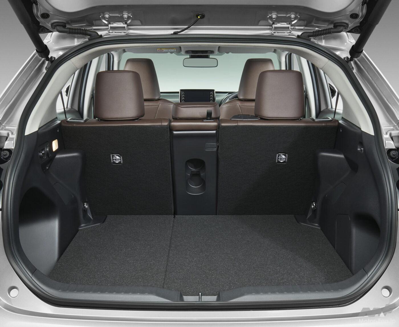 荷室容量もWR-Vがヤリスクロスより68Lほど勝ります。荷物を多く積む場面ではWR-Vが優位と言え、キャンプや長距離ドライブ、買い物などで活躍することでしょう。また、リヤシートの折りたたみもスムーズで、フラットなラゲッジスペースが確保できます。