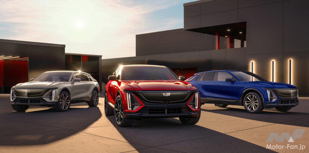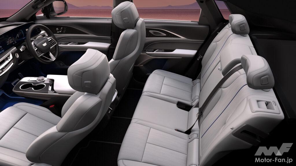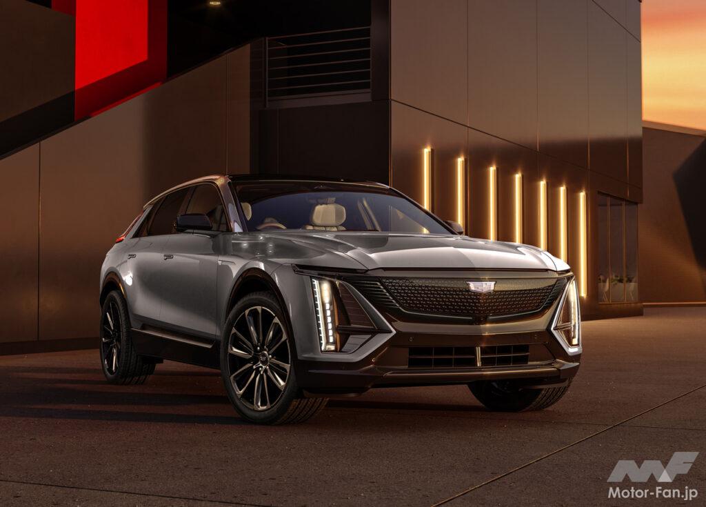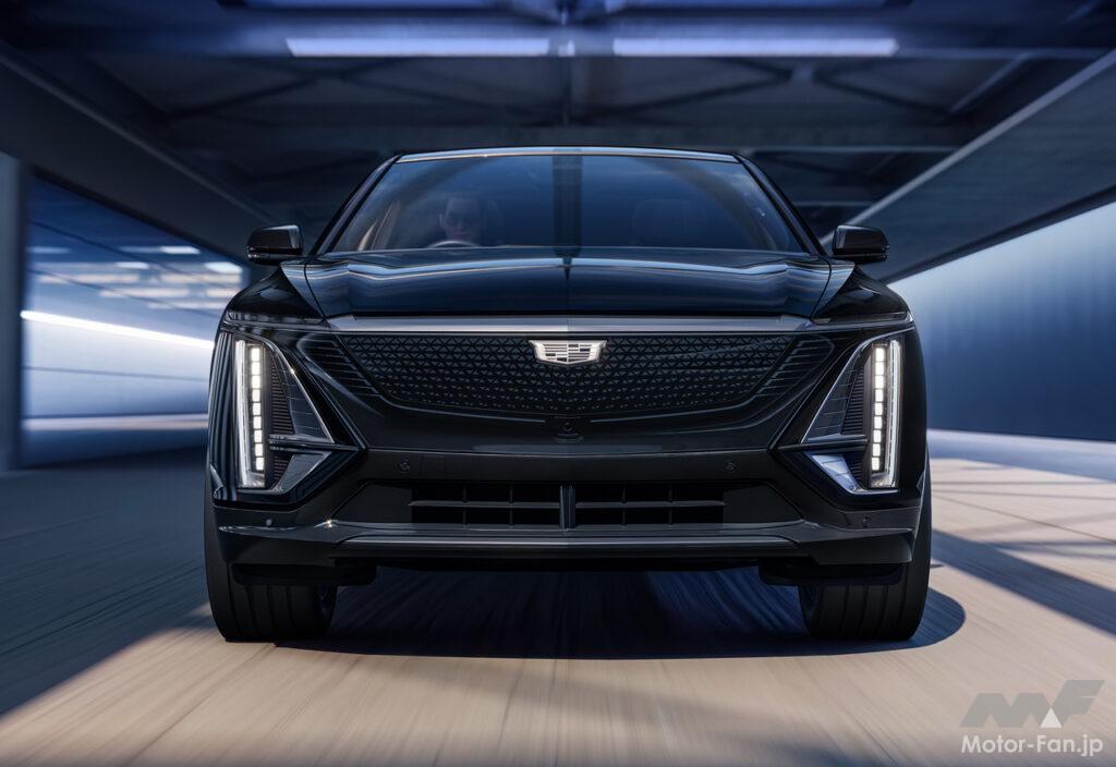 キャデラック・ヘリテージをも受け継ぐ、新世代のキャデラックデザイン言語を採用したフロントフェイスは、ブラックのクリスタルシールドの中央に位置するクリアタイプのキャデラッククレストが、リリックが新世代のBEVであることを印象付ける。また、キャデラックの象徴ともいえる縦長のLEDヘッドランプが、上部のスワイピングLEDウィンカーとともに、存在感ある美しいワイド&ローのフロントスタイリングを際立たせている。