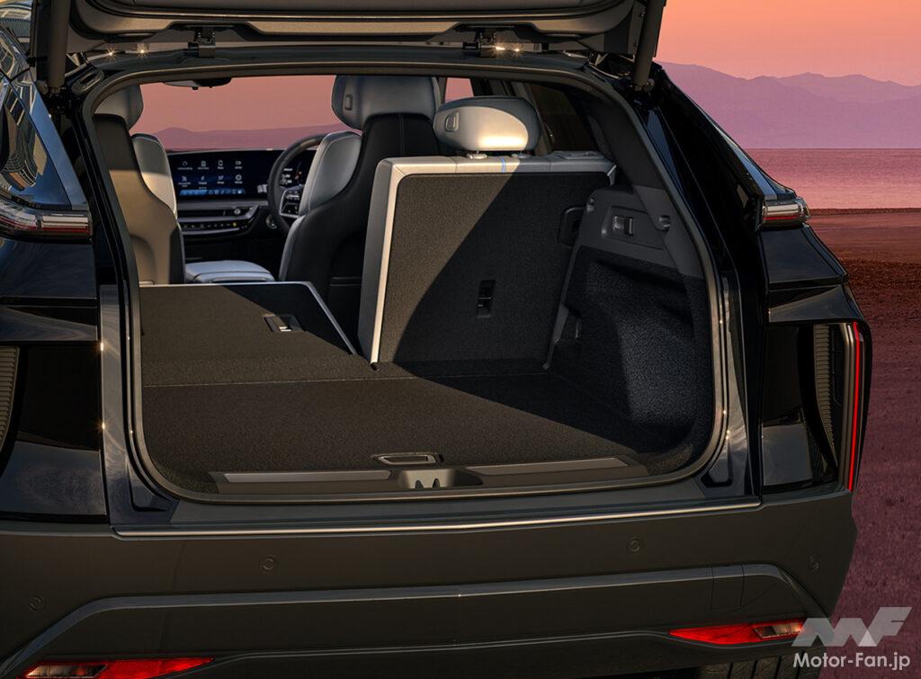 電動化されたことで生まれたスペースは、クラス最高レベルの広さの後席のレッグルームに加え、電動開閉式のテールゲートを備えたラゲージスペースに反映。荷室容量は通常793Lで、最大1722Lに拡げられる。