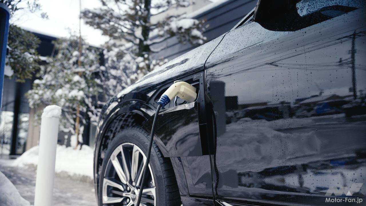 バッテリー容量は95.7kWh。一回の充電での走行距離は510km(WLTPモード/社内参考値)を達成する。自宅で通常使用する100Vで充電できるほか、200Vの電源を用意すれば充電時間を短縮することが可能。外出先では急速充電(日本仕様ではCHAdeMOに対応)を利用して、充電時には希望の充電終了レベルを設定することもできる。