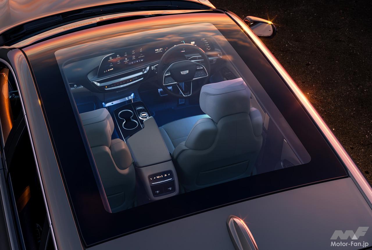 往年のキャデラックを彷彿とさせる美しいリヤデザインには、1967年型エルドラドへのオマージュとしてデザインされたテールランプを採用。さらに、クラストップレベルの広さを誇る電動サンシェード付きガラスルーフを搭載し、差し込む光がインテリアを美しく演出。スポーティなスタイリングを強調するアクセントになっている。