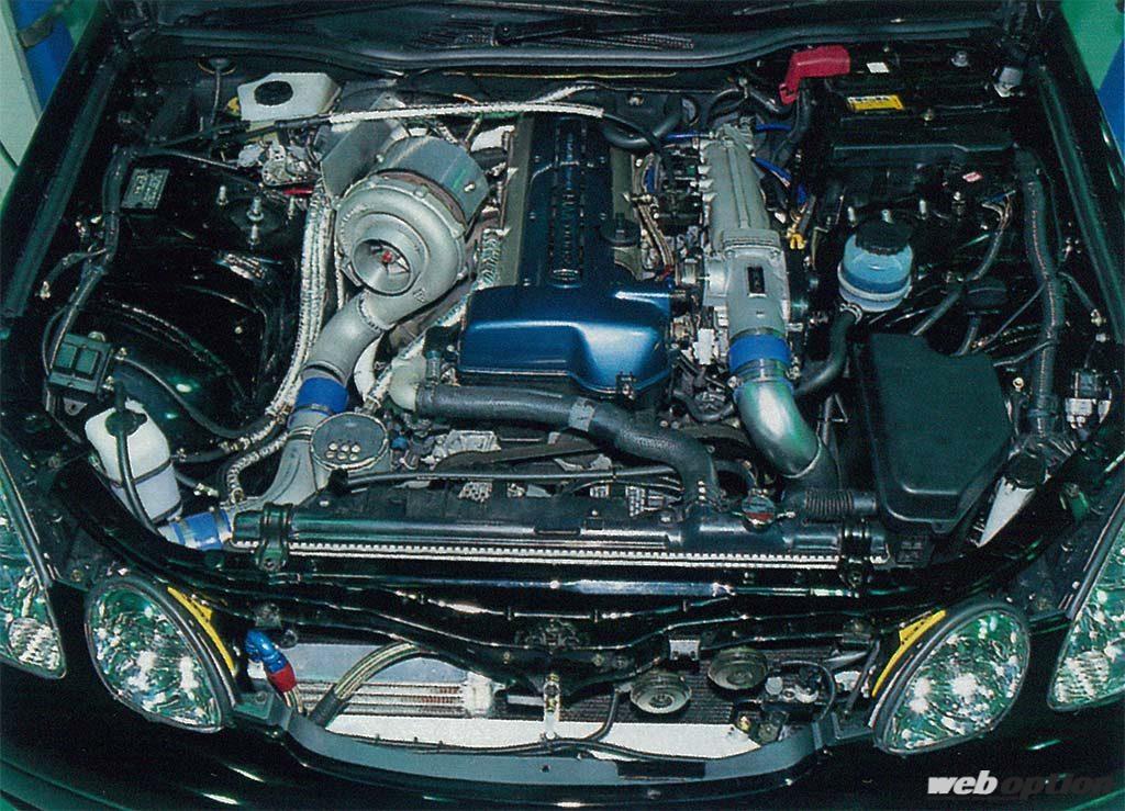 エンジンはGTマシン同様、3S-GTEに換装。2.2L化した腰下にT88-34Dタービンを組み合わせて650psオーバーを発揮する。一発目のアタックではブースト圧が安定せず(瞬間的に3.0キロ掛かってしまう)、290.4km/h止まり。