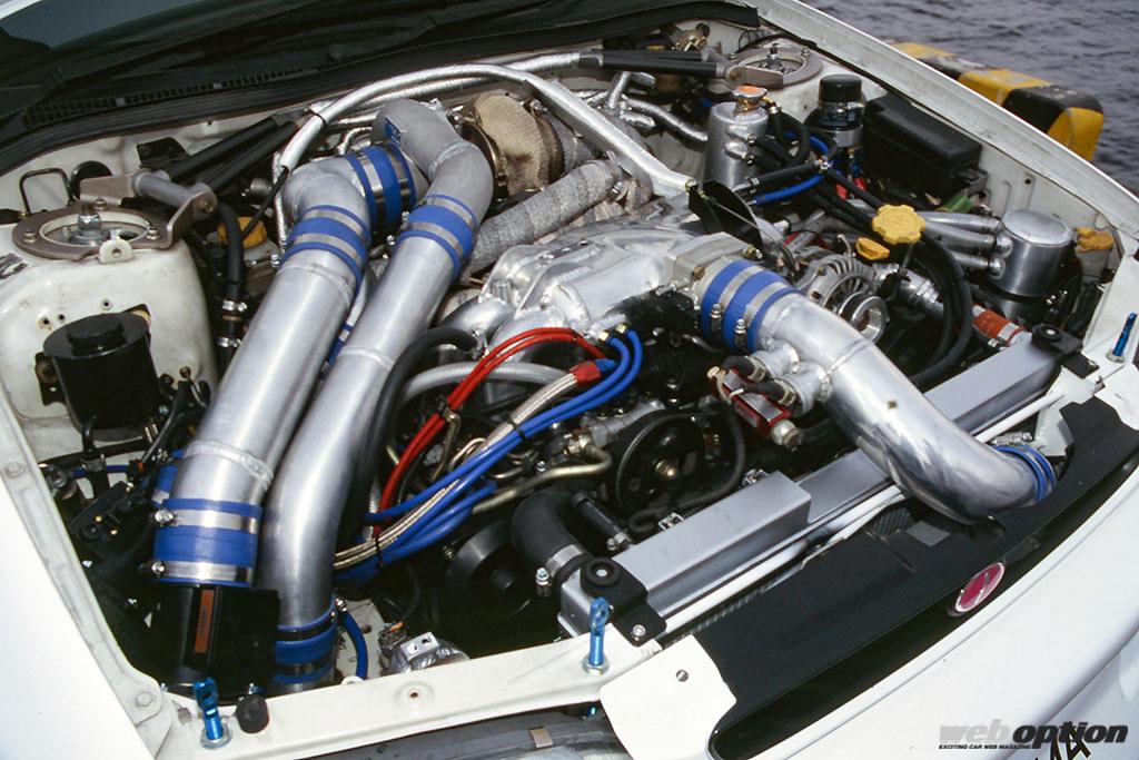 エンジンは13Bペリフェラルポート仕様。内部にはスクートが開発したNBアペックスシールを奢り、タービンには大型のT51Rをセット。また、サスペンションには独自のライドハイトシステム(左右のダンパーを連結して中間部に減衰力調整バルブを配したもの)を搭載し、驚異的な操安性を実現しているのもポイントだ。