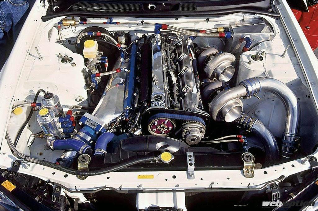 心臓部は、NHRAドラッグ仕様のフルチューンRB26だ。GT3540ツインターボで1460ps/118kgmという怒濤のパワーを発揮。ステージ次第では時速400キロも狙える至宝のスペックだ。