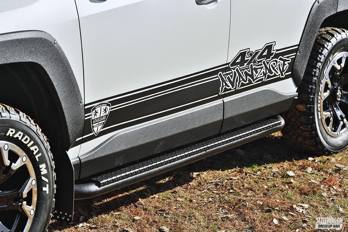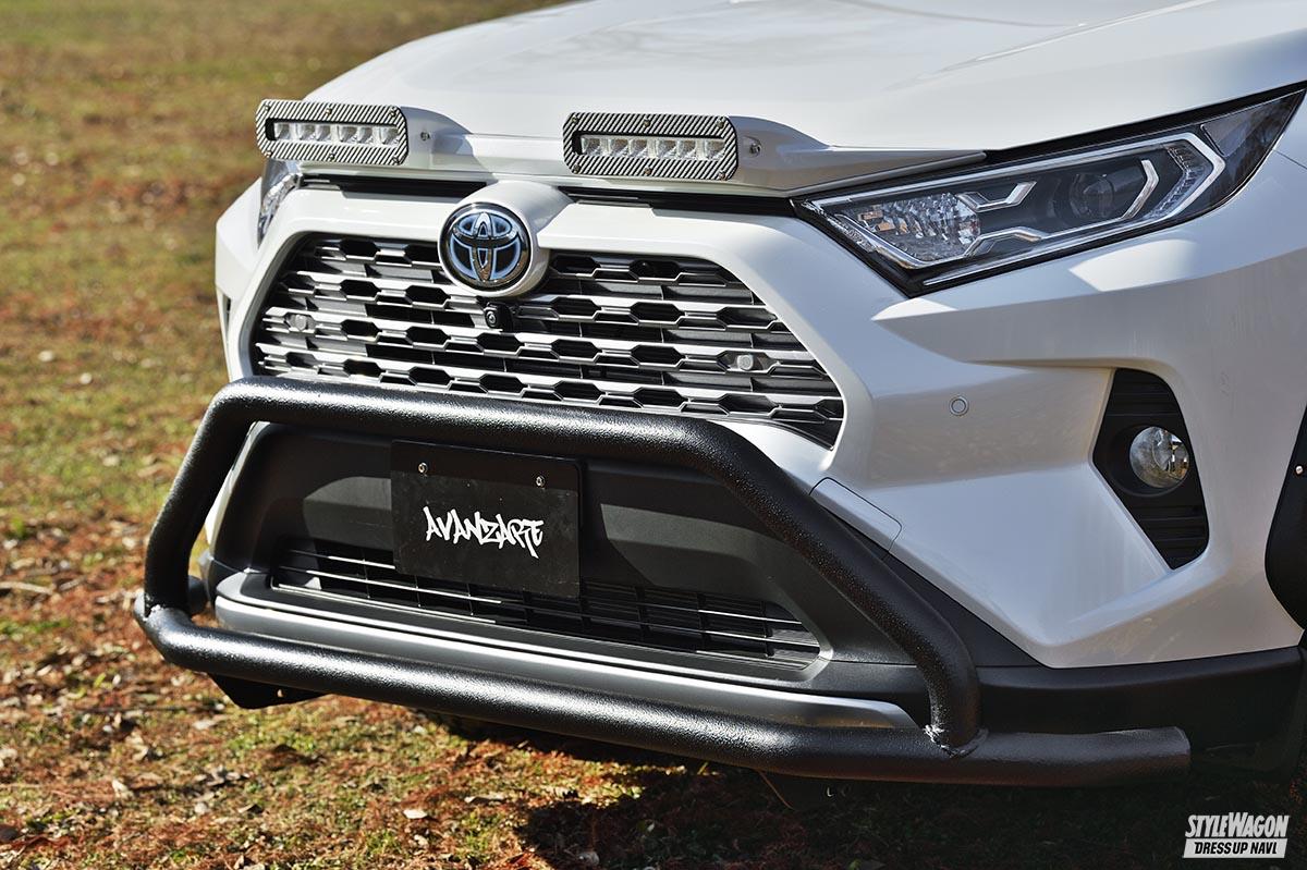 エアロパーツ 【トヨタ・RAV4】オフ系カスタムを全身で謳歌する、話題のシリーズ第2弾 アヴァンツァーレ4×4【写真・12枚目】 ボンネットの物足りなさを解消するにもってこいな小物、ワイパーガード。柔軟性のあるPVC製のため、ボンネットに沿ってピッタリ貼れる。 2ウェイライトは、ポジ連動でイルミ点灯、駐車ブレーキを掛けた状態でワークライトが点灯すれば車検に対応。カーボンパネルとセット販売。 バックドア裏に追加できる、便利なイルミネーションも用意。車庫など、暗い場所での作業時に大きな威力を発揮する。販売は2個セットで。 こだわりのマフラーは、仕様違いで3種類から選択できる。購入後テールエンドのみの買い直しができるとのこと。RAV4全車対応あり。 ボンネットダンパーは、純正ボンネットが長く、リフトアップしている場合は余計に上げにくいとして商品化。軽い力でスムーズに持ち上がる。 この画像の記事を読む