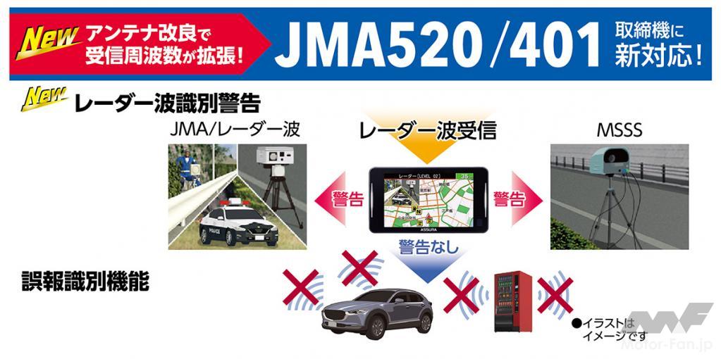 自動販売機や特定の車種から発生する電波と取締機の電波を識別し、誤報を低減している(※同社従来モデル比較)。