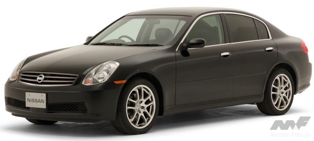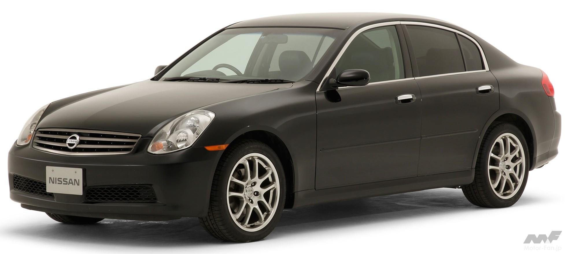 2001年発売の11代目にあたるV35型は、歴代のDNAを重視しながらも「21世紀の理想のプレミアムスポーツセダン」をテーマに、直列6気筒エンジンを廃して小型軽量なV6エンジンをフロントミッドシップに積む「FMパッケージ」の新世代GTカーへ進化した。前後重量配分52:48による高い操安性や乗り心地など格段にアップデートされた内容で、往年のスカイラインを知らない海外市場からも絶賛された。 初期は2.5ℓと3ℓのVQ型直噴エンジン搭載のセダンからスタートし、翌2002年に3.5ℓの「350GT-8」を追加。これは世界でも日産だけが採用した「エクストロイドCVT」に日本初のパドルシフトを組合せ、8速MTのようにダイレクトな運転感覚を誇った。