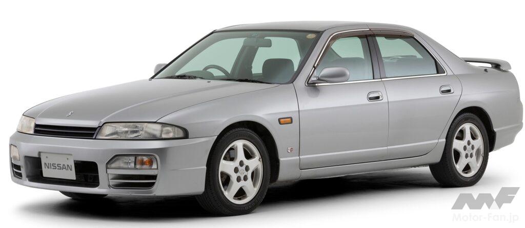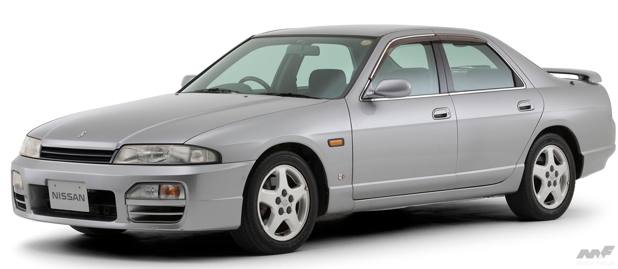 GT-R以外は5ナンバーサイズ枠に収まっていたR32型の後継として1993年に登場したのが9代目 にあたるR33型。「卓越した走りの本流グランドツーリングカー」をコンセプトにボディサイズが大型化し、すべてのラインナップが3ナンバー・サイズとなった。 エンジンは2.5ℓを主体に4種類が用意され、2.0ℓのRB20E型は下位グレード用として採用されている。 1996年には大がかりなマイナーチェンジを受け、1998年まで生産された。意外と知られていないが、ニュルブルクリンクのタイムアタックでは先代R32型のタイムを約21秒も短縮する7分59秒887を記録、劇的進化をアピールしている。今回のアンケートでは、残念ながらオーナーが見当たらなかった。