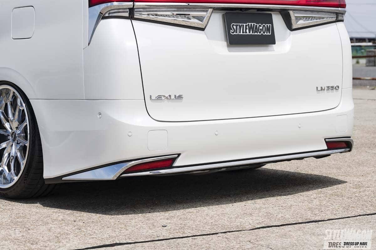ホイール(カスタム) 【30系トヨタ・アルファード】LM仕様に絶妙にマッチする足元メイク【写真・7枚目】 LMのアイデンティであるスピンドルグリル。ホワイトボディとメッキグリルの組み合わせは、ブラックボディとは異なる清潔感ある品格を漂わせる。 グリル_エンブレム ヘッドライト リアバンパーはもちろん、エンブレム類もレクサスLM純正にスイッチ。ひと目でLMと分かる圧倒的存在感。 前後バンパーとのバランスを整えるサイドステップ。メッキガーニッシュが、ボディサイドにアクセントを与える。 新車ベースでLM仕様へチェンジしているため配線処理も最小限。ウインカーも当然シーケンシャル仕様となる。 ジルドーンに組み合わせたタイヤは225/35-21サイズ。ミシュランタイヤはショルダーデザインが一般的なタイヤよりも厚く、存在感がグッと主張される。 フェンダー内へタイヤ&ホイールをおさめるためにフロントはピロアッパーの調整、リアはアーム交換。ただし極端なキャンバールックが付かないようセッティングしている。 この画像の記事を読む