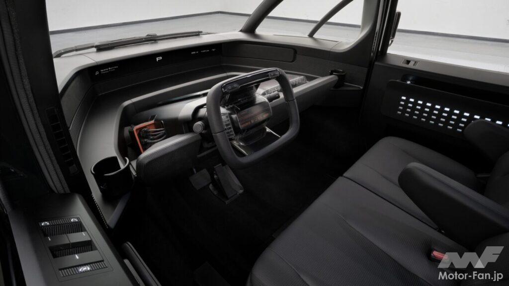 ちょうど1年前、カヌーはMPDV=マルチ・パーパス・デリバリー・バンというモデルを発表した【写真1】。車両タイプはMPDV1とMPDV2のふたつで、それぞれ80kWh/60kWh/40kWhという3つの電池搭載量を選べる。市販価格は3万3000ドル(1ドル=114円換算で376万2000円)からだというが、これはおそらく40kWh電池の最廉価版であり、発表資料から想像するとシートは運転席のみ、内装(トリム)は簡素なものと思われる。2022年から少量生産を開始し、2023年から市販する予定だ。
