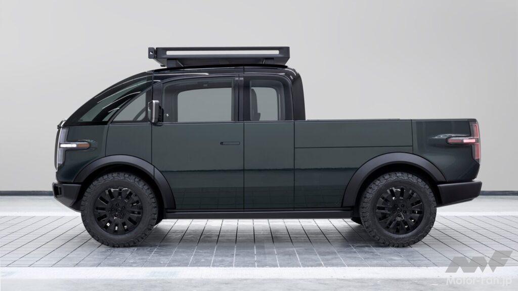 MPDVに続いてカヌーは、ライフスタイルビークル【写真4】とピックアップトラック【写真5】を発表した。シャシーはMPDVと共通で、上屋の「着せ替え」仕様である。BEVスタートアップ各社が言うスケートボード・シャシー最大のメリットは「走行機能が独立しているため上屋を分離でき、上屋を自由に設計できる」ことだが、カヌーもこの方式である。