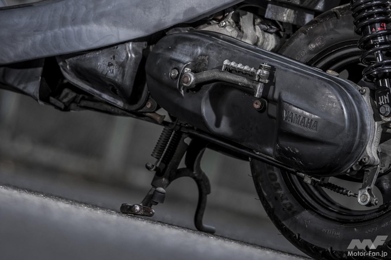 極端に消耗している部品はなかったが、センタースプリングやウエイトローラーなど純正ではないパーツもいくつか見かけた。これらはチューニングパーツというよりs、補修用の社外品のようだが、実走での印象は、特別速くも遅くもなく、可も不可もない感じ。