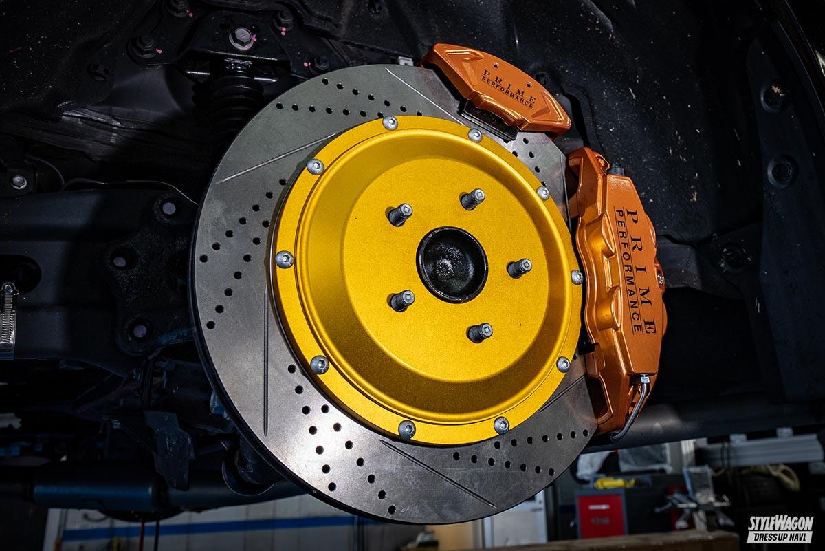 電動パーキングブレーキに対応したブレーキキットもあり。足元のインパクトを増すだけでなく、ドライブ時の制動力にも貢献するのだ。●価格:79万2000円(前後セット)●対応:30アルファード&ヴェルファイア