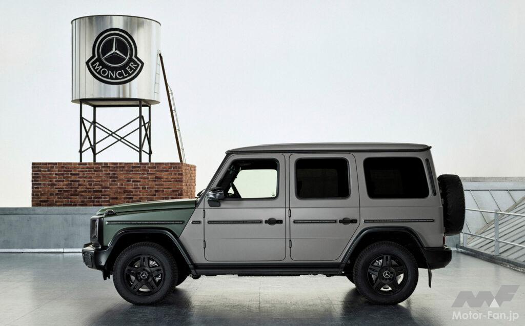 サイドデザインでは、ウィンドウフレームや特別仕様の18インチホイール、そしてランニングボードまでもがブラックで統一され、全体の印象を引き締めている。Gクラスを象徴するアイテムのひとつであるリヤのスペアタイヤには、初代Gクラスに装備されていたソフトカバーを採用し、メルセデス・ベンツとモンクレールのコラボレーションロゴがデザインされている。