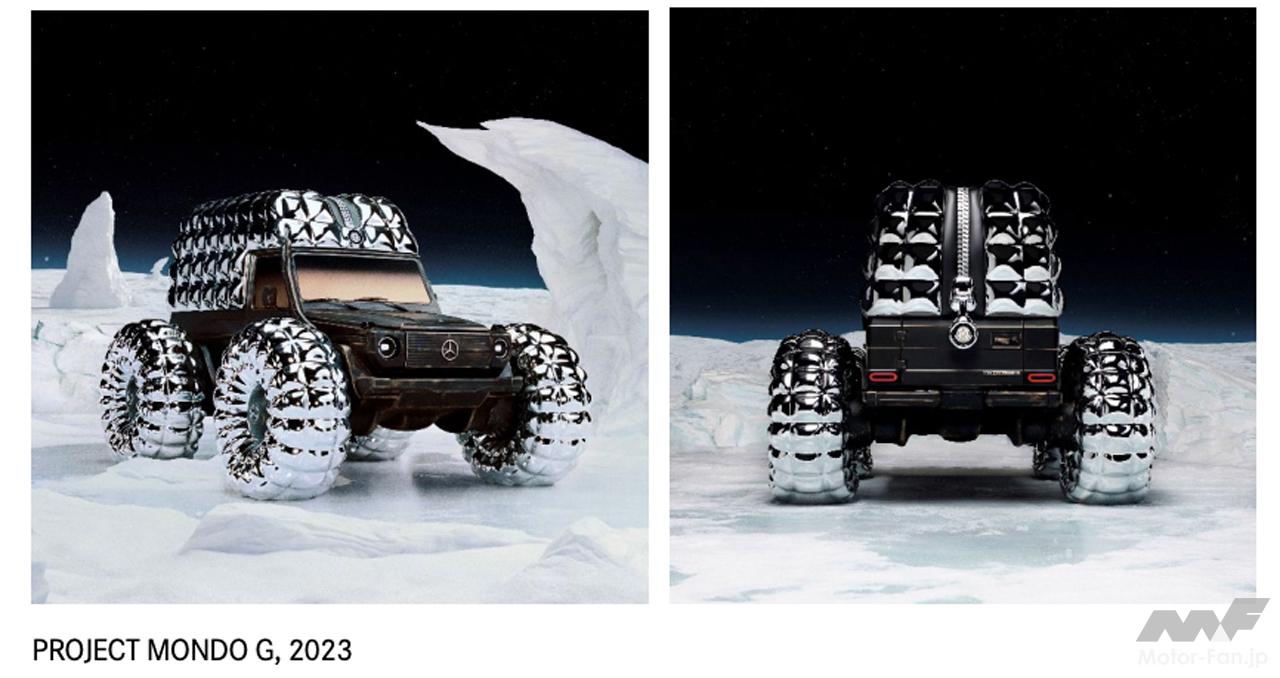 2023年2月に行なわれた第1弾のコラボレーションでは、Gクラスがモンクレールの伝統的なダウンジャケットを纏った鮮烈なアート作品『PROJECT MONDO G』を発表した。
