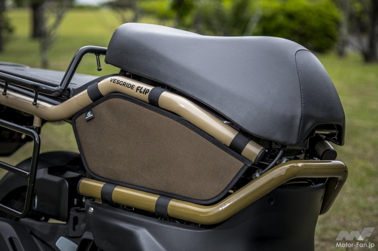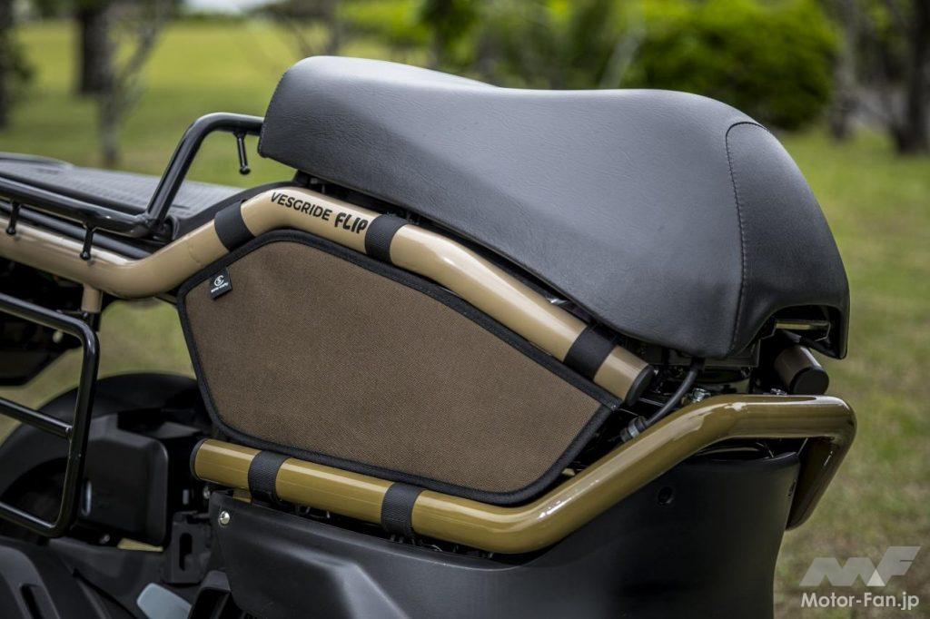 そんなベスグライドの第2弾「VESGRIDE FLIP」(ベスグライドフリップ)が2021年5月下旬に新登場! ベスグライドと同様の「アドベンチャーモバイル」をコンセプトに、ベンリィ50/110(新車)をカスタマイズした渾身作となっている。