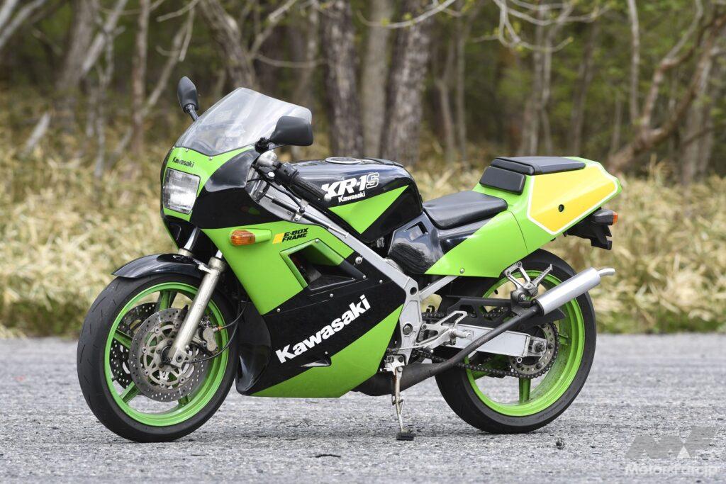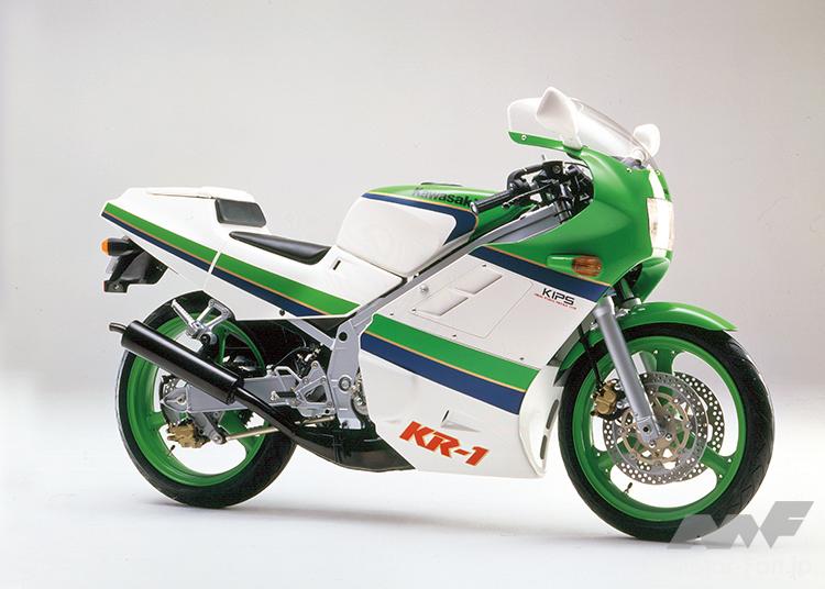 もうカワサキは、2ストロードスポーツは作らないだろう。多くのライダーがそう感じていただけに、1987年の東京モーターショーで同社が公道用KRの2代目、KR-1を発表したことは驚きだった。もっともそれ以上に驚きだったのは、エンジンがパラレルツインだったことかもしれない。当時のカワサキに2ストパラレルツインのイメージはまったくなかったし、1980年代後半の2スト250ccレーサーとロードスポーツの世界では、パラレルよりV型のほうが優勢……というムードが出来つつあったのだから。