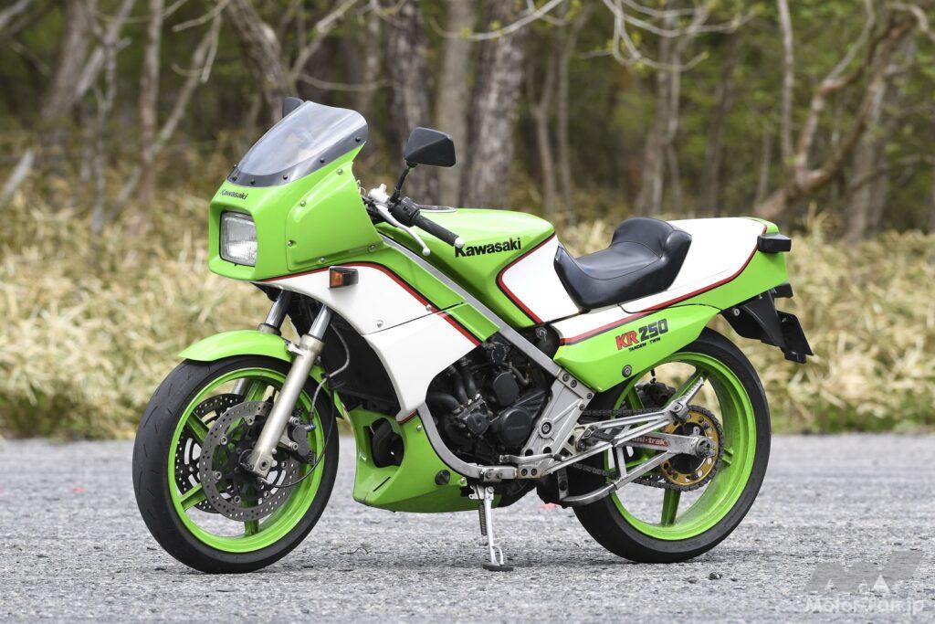 1980年代のカワサキが世に送り出した2台の2ストロークKR、1984~1985年型KR250/Sと、1988年から発売が始まったKR-1/S/Rは、同社にとっては成功作とは言い難いモデルである。もっとも、いずれも総生産台数は1万弱……と言われているので、近年の日本市場における250ccクラスの販売台数を基準にするなら、その数字は決して悪くはない。ただし、同時代のライバルだったヤマハRZ250RやTZR250、スズキRG250Γ、ホンダNSR250Rが、全盛期に“年間”2万台以上を記録していたことを考えると、やっぱりKRの人気はいまひとつだったのだ。