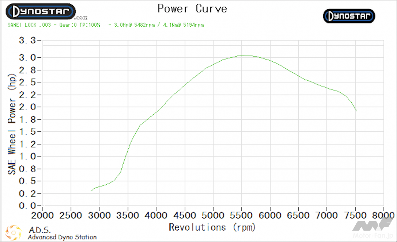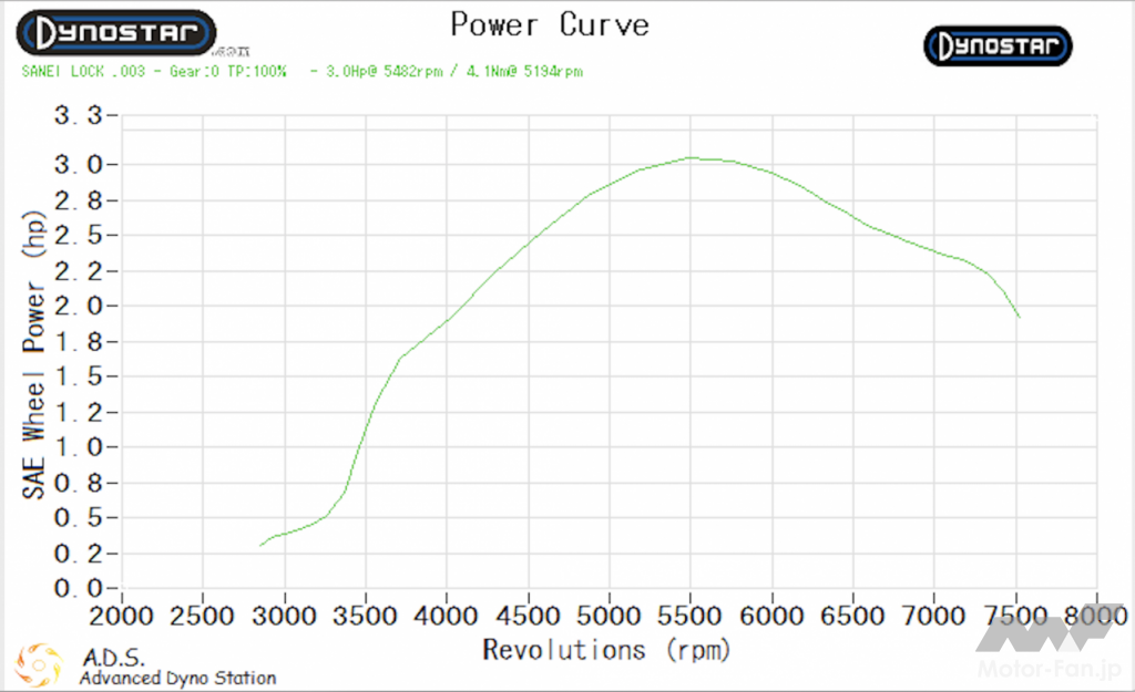 ただし、今回の最高出力3.3HPという小さな数値に対しては、三保田さんも「車体に何らかの要因がありそう。20年近く前の車両なので、消耗部品の程度をチェックしたら良いと思います。私見ではマフラーのエキパイの潰れが気になりますが。」と話す。