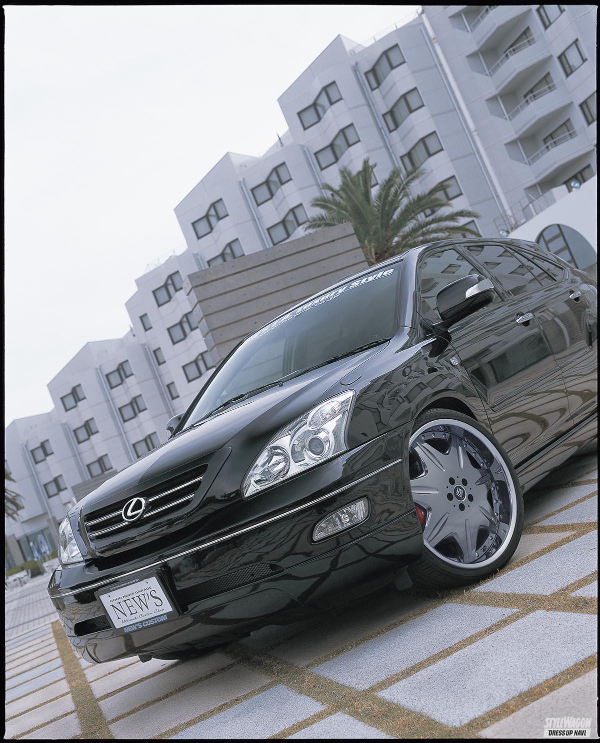 ニューズはすでに、北米のラグジュアリーシーンを取り入れ、30系ハリアーに向けて22インチを提案していた。当初はホイールを用意できても国産SUVに履ける22インチタイヤのサイズ設定がない時代。