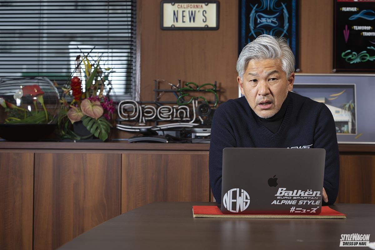 「一から十までの作業を一人の職人が請け負う「ザ・俺の店」ではなく、あそこに行けば何か役に立つ情報がある、自分のクルマをスタイリッシュにコーディネイトしてくれるお店、というスタンスは、現在のニューズにも通じています。軌道に乗った、なんて感覚は今でもありませんが、それでも創業間もない頃からオリジナルエアロも作って来ましたね。なぜなら、ワゴンに似合うエアロが無かったから。無いもの、欲しいものを自分で作るって、やっぱり楽しい。常々、私のモチベーションの原動力となっているのは変化と創造。誰も手をつけていない分野に先頭を切って手をつけたり、それまでやっていたことをガラリと変えるってメチャクチャ大変だし、組織が大きくなればリスクも大きくなります。楽をしたいなら後追いに徹して、ソレっぽく真似するのが一番。でも、それじゃ面白く無い。常に好奇心と情熱を忘れずに。どれだけ苦労をしても、そこをやり遂げようという気持ちがすべてのエネルギーになるのだと思います」。