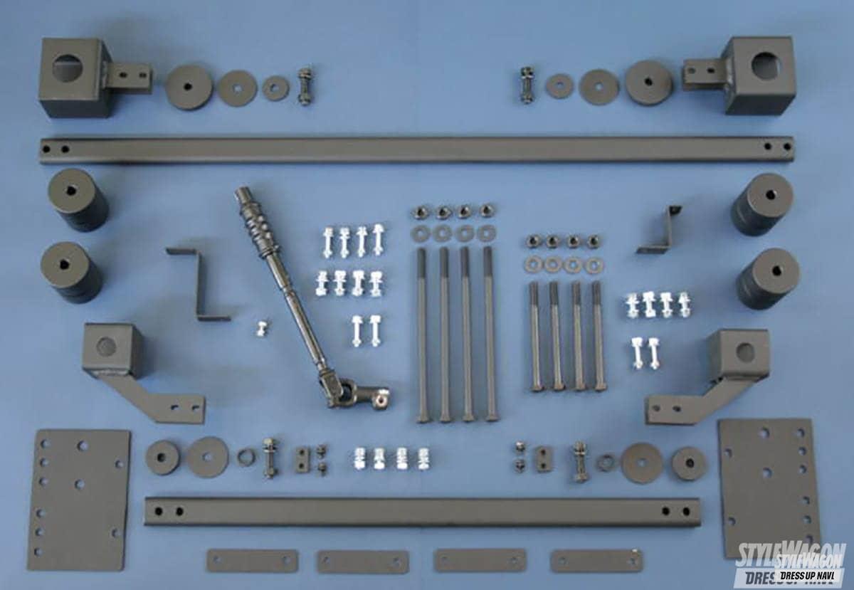 後者は、ボディとフレームが別体のプラドならではの手法で、スペーサーやブロックを挟み込み大幅なリフトアップを可能とする手法。ここでは、初心者でも取り組みやすい前者をピックアップする。