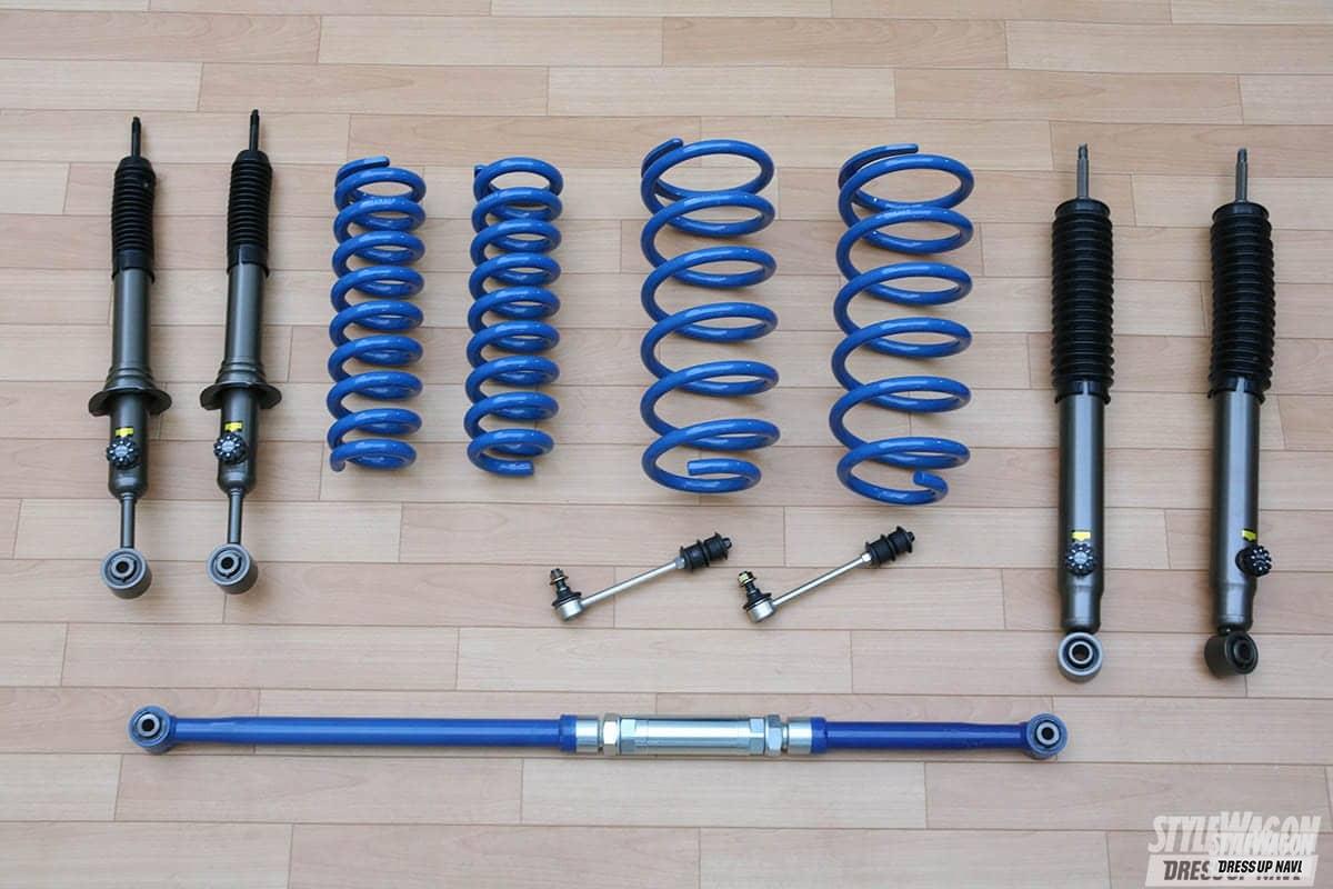 リフトアップの主な手法は、サスペンションの変更とボディリフト。前者については、ローダウン系と同様、スプリングやショックを交換することで車高を上げる方法。