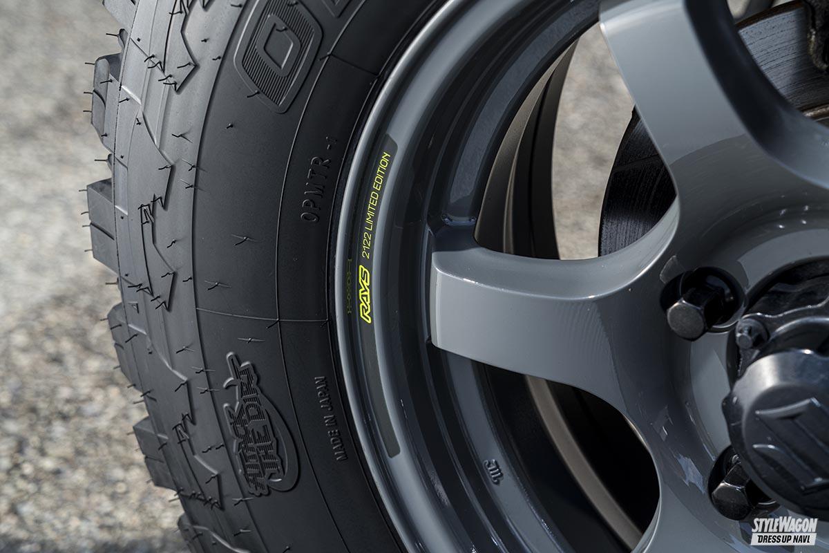 ゆえに主戦場はサーキットやストリートなど、オンロードでの走りのシーン。それは確かにそうなのだが、実は見落としてはならないのが、ラージP.C.Dモデルというシリーズが展開されていること。これはつまり139.7のSUVやクロカンに向けた、グラムライツからの提案。つまりジムニーにぴったりとハマるモデルも、グラムライツには数多いのだ。
