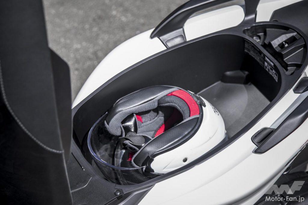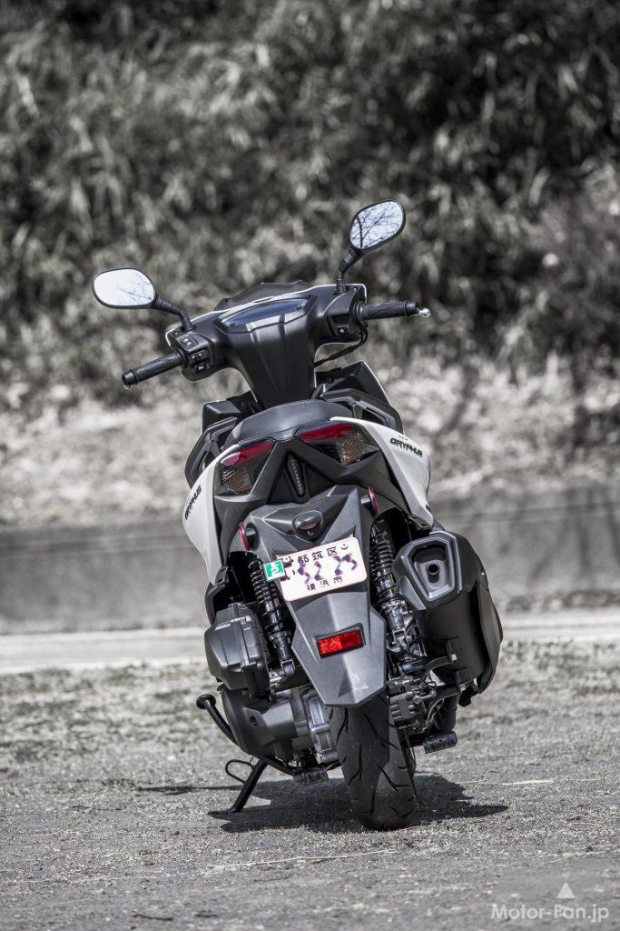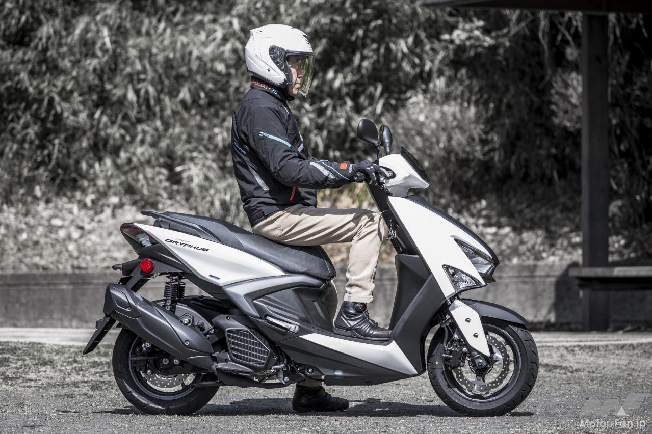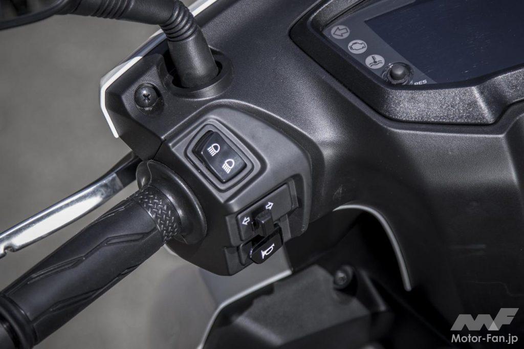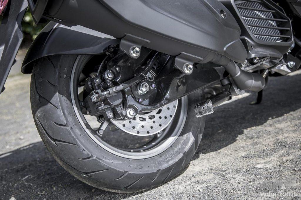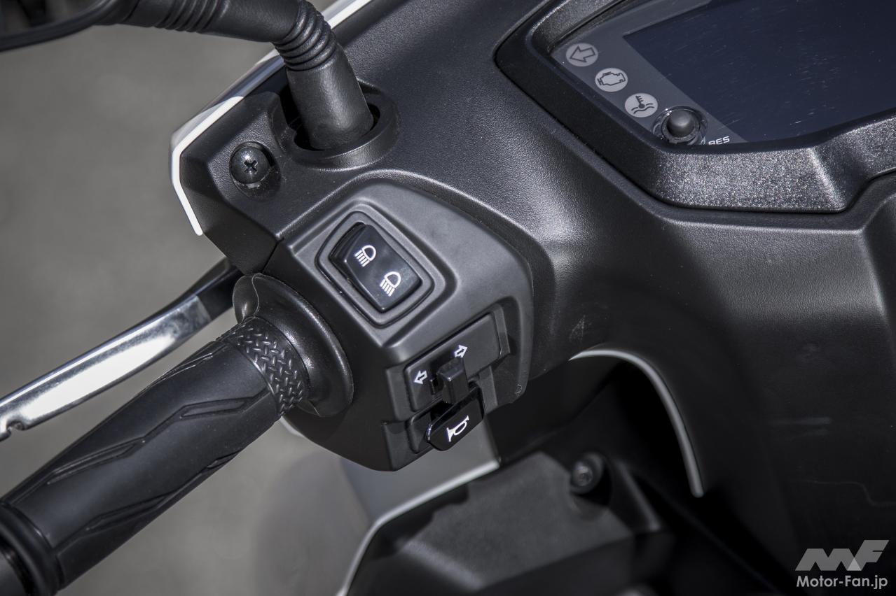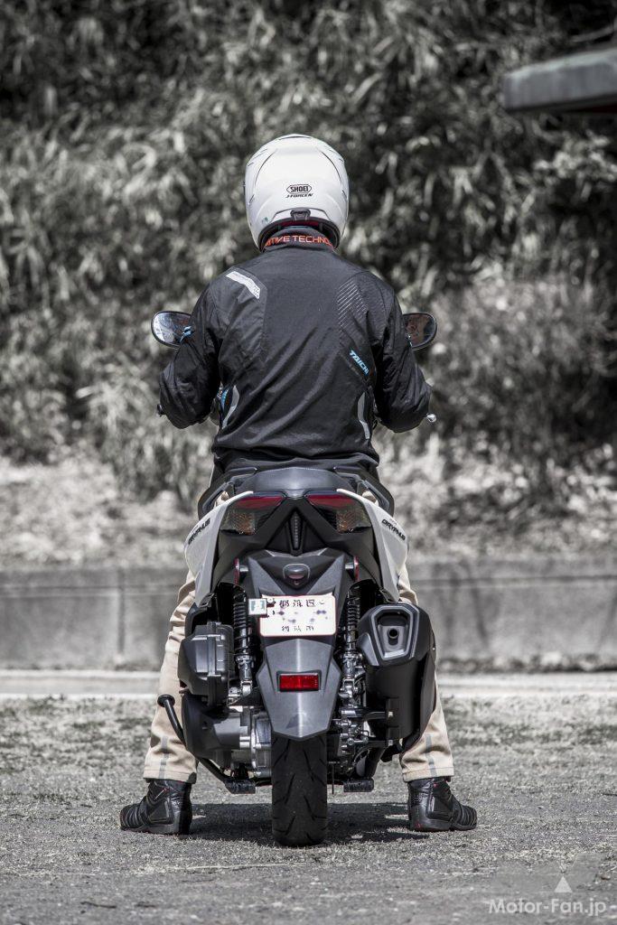 ただ、それらの感触はドッシリとした落ち着きを伴い、むしろ心地良いフィット感覚を生んでいるように思えた。明確なカテゴリーが存在している訳ではないが、12インチホイールクラスのスクーターとしては上質で立派な雰囲気を漂わせていたのが印象深い。