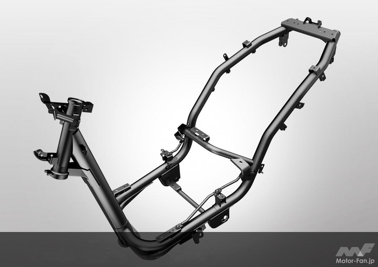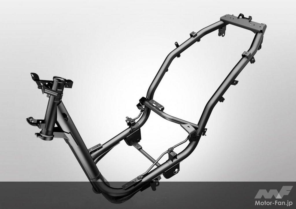 前後のタイヤサイズも共に70偏平の12インチを採用。この点に変わりは無いが、ワンサイズ太くなって前120後130サイズを履いている。スチール製アンダーボーンフレームも新設計。そして搭載されたエンジンは、次世代Blue Coreと呼ばれる最新の水冷SOHC4バルブ単気筒である。