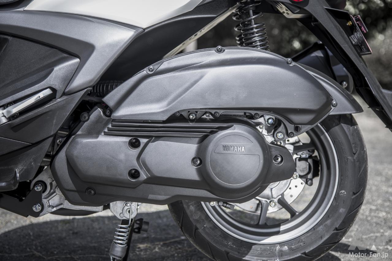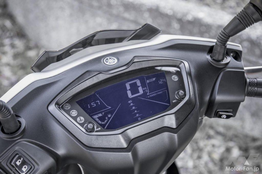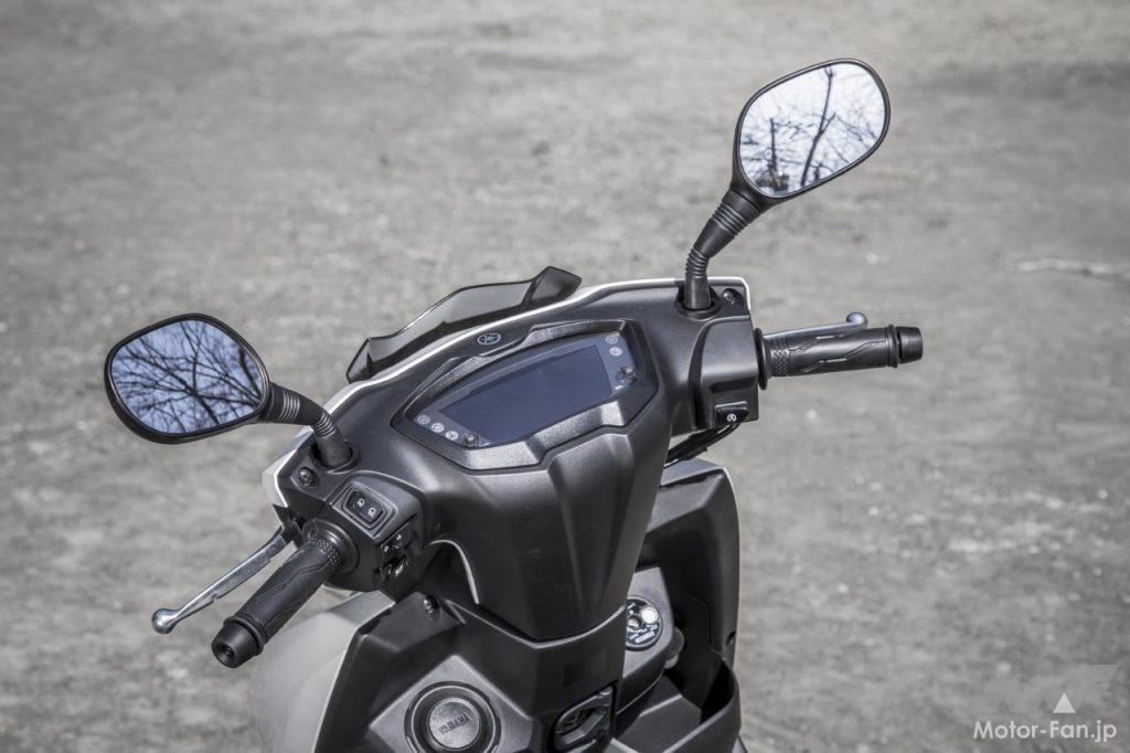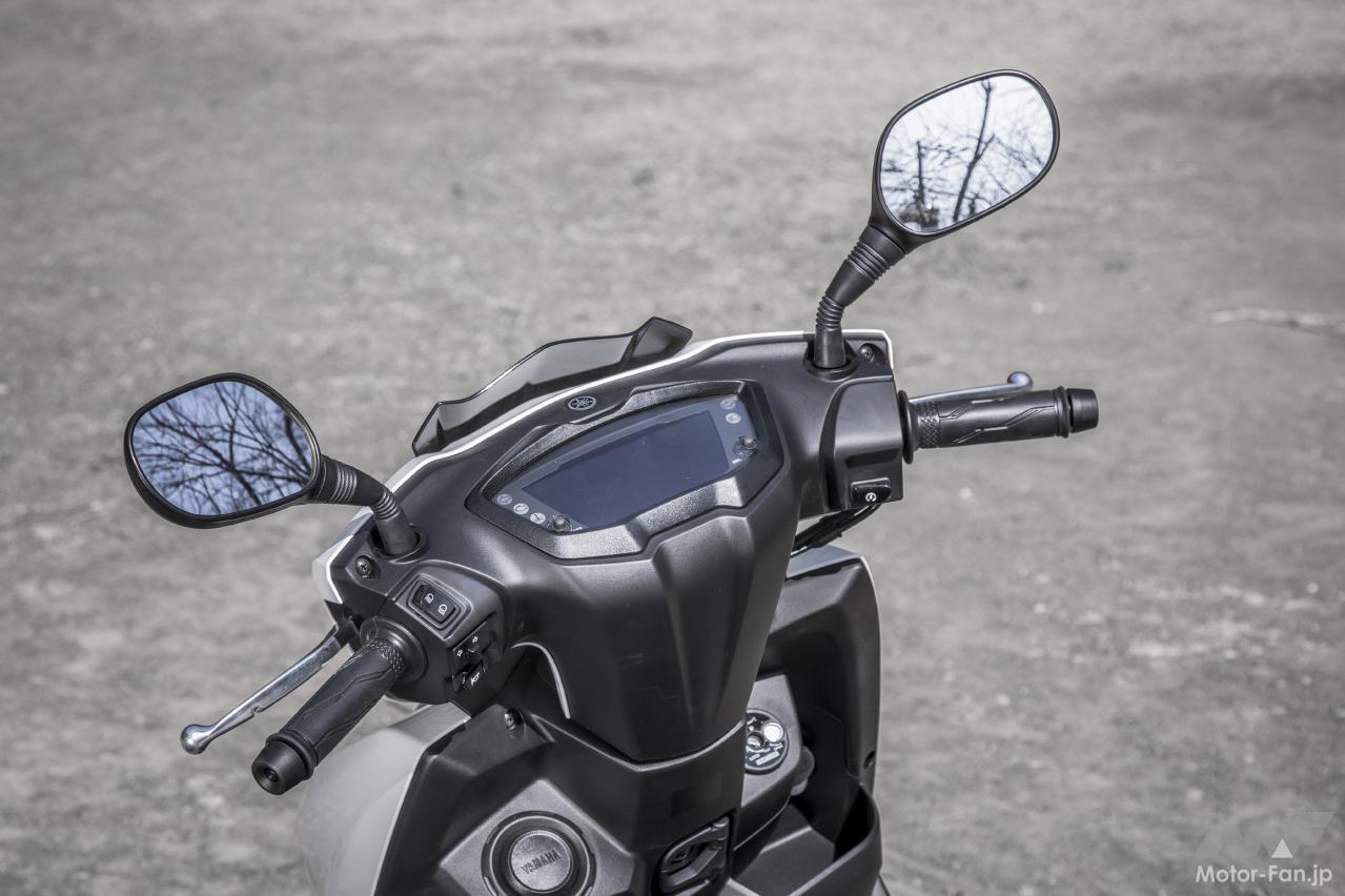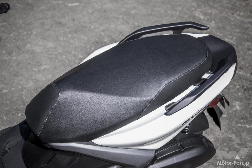 現行シグナスXと比較すると、車体サイズはひと回りボリューム感が増している。全長は45mm、ホイールベースは35mm、全高も40mm拡大されているが、車幅は従来通りの690mmがキープされている。