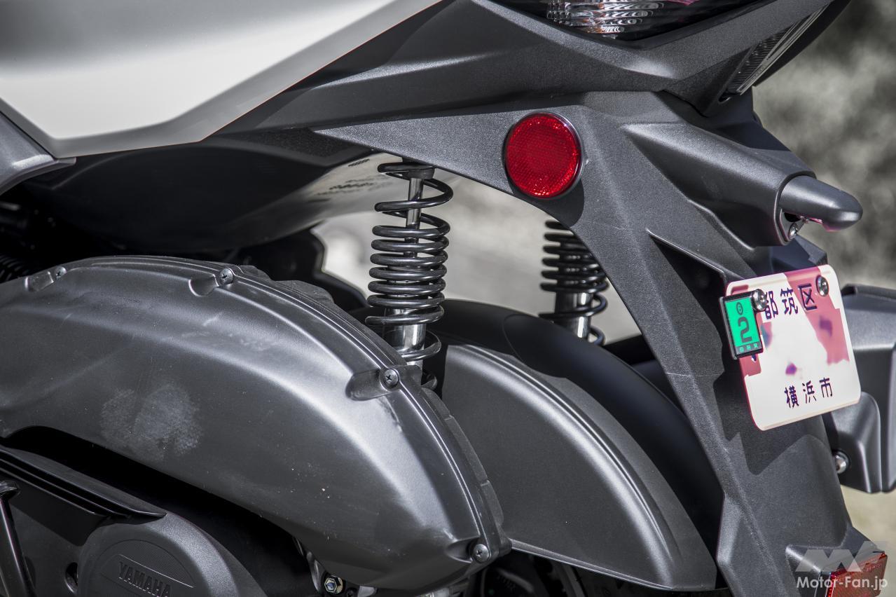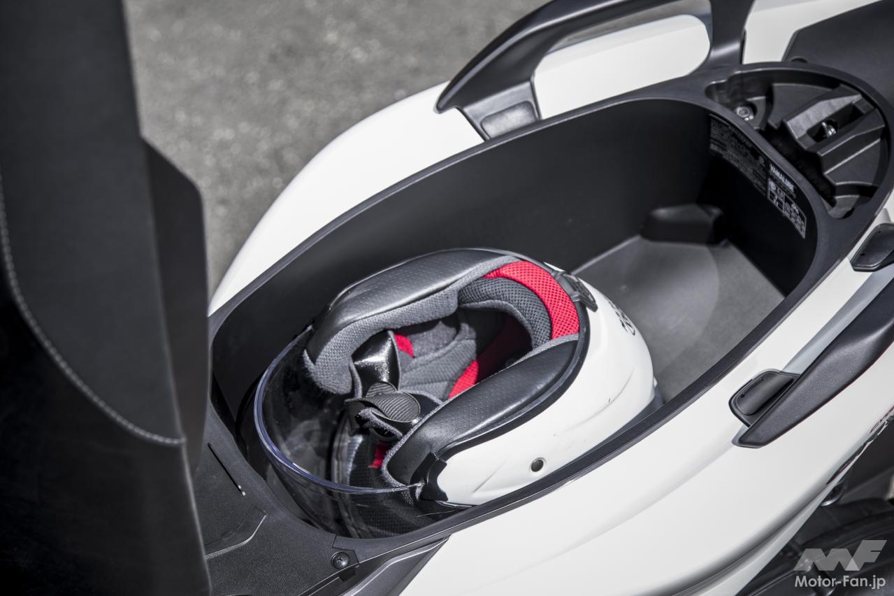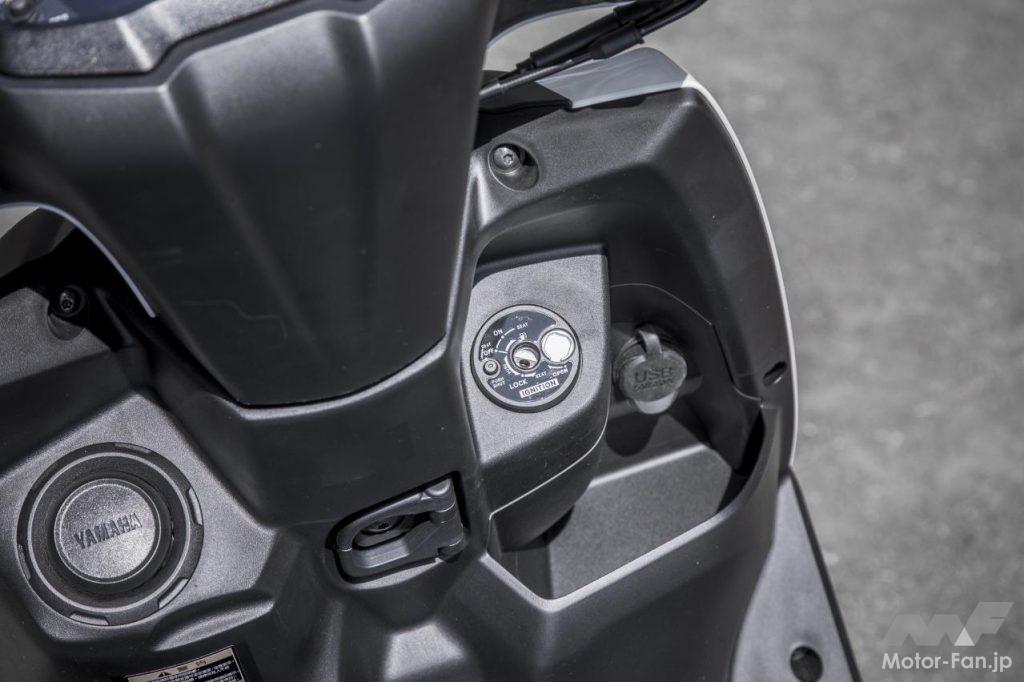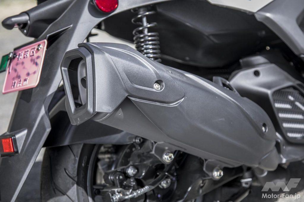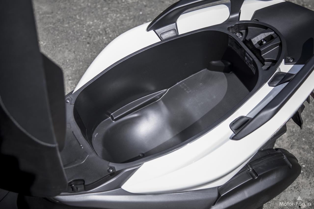 現行シグナスXと比較すると、車体サイズはひと回りボリューム感が増している。全長は45mm、ホイールベースは35mm、全高も40mm拡大されているが、車幅は従来通りの690mmがキープされている。